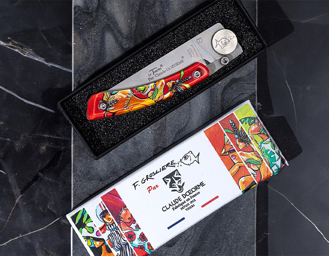 La Maison Claude DOZORME avec son savoir-faire coutelier depuis 1902, s’est associé à l’artiste peintre clermontois François GROSLIERE pour une collaboration unique et fascinante.