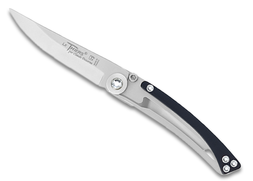 Imaginés et conçus par le Maître coutelier Claude DOZORME lui-même au début des années 2000, ces couteaux « squelettes » portent en eux tout le savoir-faire de la Manufacture. Leur compacité et leur poids contenus ne se font pas au détriment de leur robustesse. Ils sont très sécurisants avec leur mécanisme d’ouverture-fermeture « Liner-lock » et l’épinglette au dos permet de les accrocher sur le bord d’une poche ou d’un sac. Intégralement fabriqué en France dans les ateliers de la Maison Claude DOZORME, ces couteaux sont le reflet d’un parfait mélange entre high-tech et tradition française et ce depuis près de 25 ans, loin des modes passagères. Une dizaine de collections vous attendent !