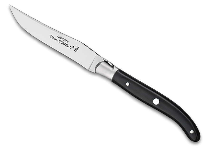 Si le couteau Laguiole sait être raffiné et élégant il sait aussi être sobre pour mettre en valeur une forme iconique de la coutellerie française, la forme Laguiole. Plein manche, en bois d’olivier ou en méthacrylate (pour un lavage en machine) de couleur noire ou crème, sa légèreté et son agrément en main, feront merveille sur une table du quotidien mais aussi sur une table de fête.