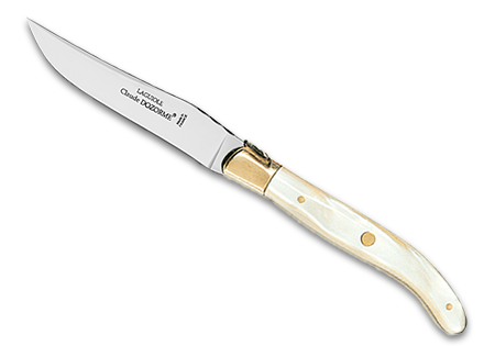 Si l’histoire du couteau Laguiole est longue et riche, il faut reconnaitre à la Maison Claude DOZORME et particulièrement au Maitre Artisan Coutelier Claude DOZORME lui-même, de lui avoir donné ses lettres de noblesse avec ce couteau de table à lame fixe, fabriqué dans les ateliers de la Manufacture depuis plus de 40 ans et que l’on retrouve avec toujours autant de succès au 4 coins du Monde ! Fourchettes, cuillères et bien d’autres accessoires des collections de la Maison Claude DOZORME vont vous accompagner au quotidien comme les jours de fête !