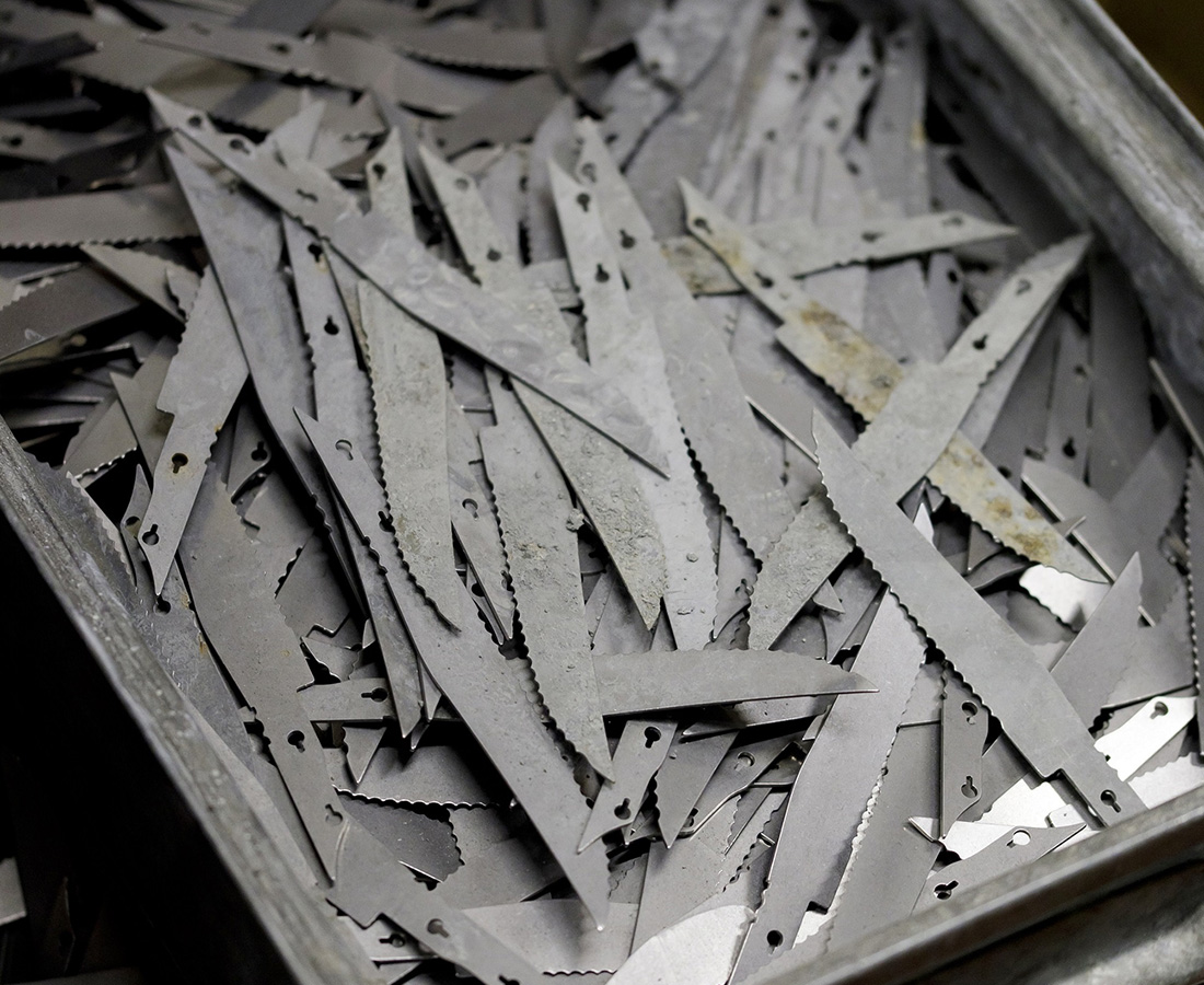 Une fois l’acier choisi, la lame est dessinée informatiquement pour permettre une plus grande précision dans la fabrication, et une plus grande créativité dans les formes et détails. Vient ensuite le traitement thermique des lames (la trempe) qui permet de transformer la composition moléculaire pour renforcer les caractéristiques mécaniques de la lame.