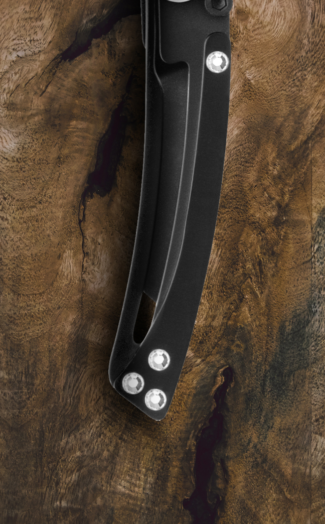 Tout comme la lame du couteau qui se doit d’être parfaite, le manche est une pièce à part entière, mûrement réfléchie qui donne une véritable noblesse et de la plus-value à l’objet. Qu’ils soient habillés de matières naturelles (bois, corne, nacre, galuchat, cuir, ivoires ou molaires de mammouth), d’incrustations (cristaux, plumes véritables ou mouches de pêche) ou encore de matières synthétiques très haut de gamme (méthacrylate, Crystallium…) les manches des couteaux Claude DOZORME se parent de leurs plus beaux atours.