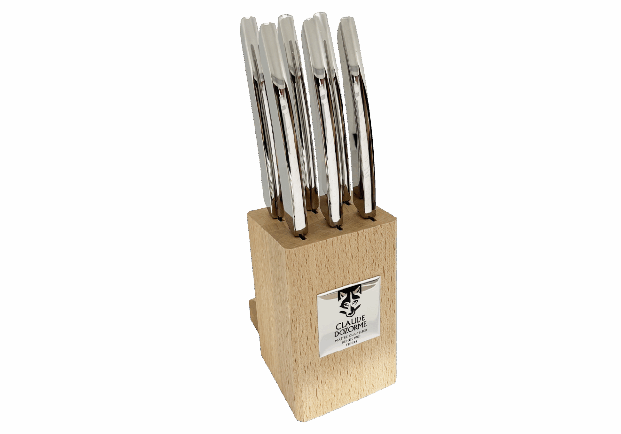 Disponible dans un Bloc hêtre de 6 couteaux, idéal pour offrir ou s’offrir.