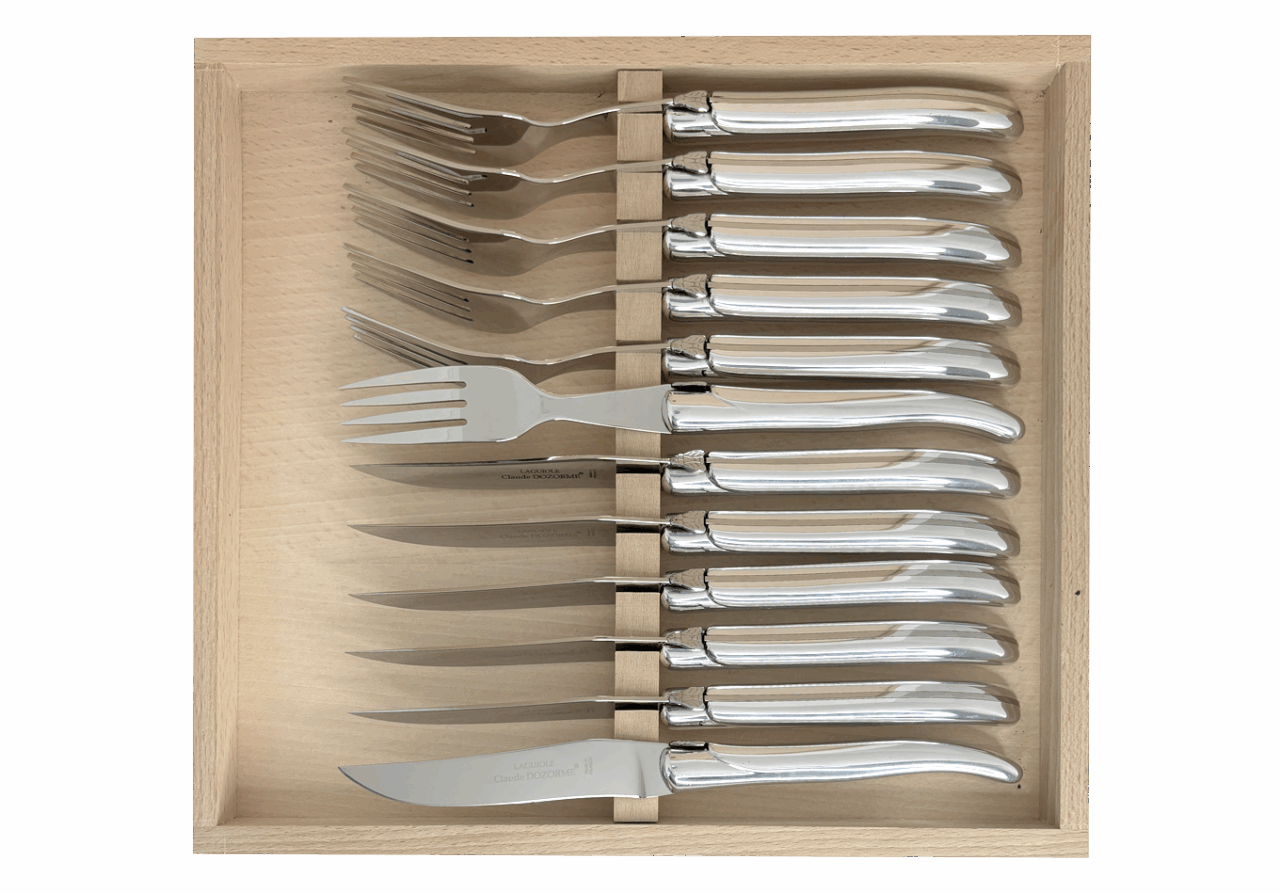 Accompagné par la fourchette Laguiole, élégante et au design unique, cet ensemble de couverts habillera vos tables.