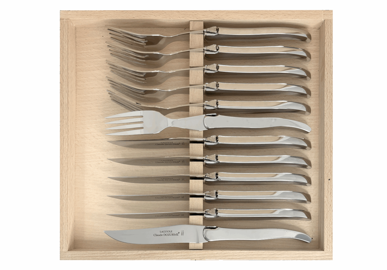 Claude DOZORME fut le premier fabricant français à adapter ce couteau mythique à la table avec une lame fixe. Il occupe aujourd’hui une place centrale dans l’univers Table de notre Maison. Avec un design distinctif signé Claude DOZORME, cette icône du couteau est sans cesse améliorée et renouvelée dans nos ateliers, avec toujours la même qualité irréprochable. Ce Laguiole ne craint aucune concurrence !