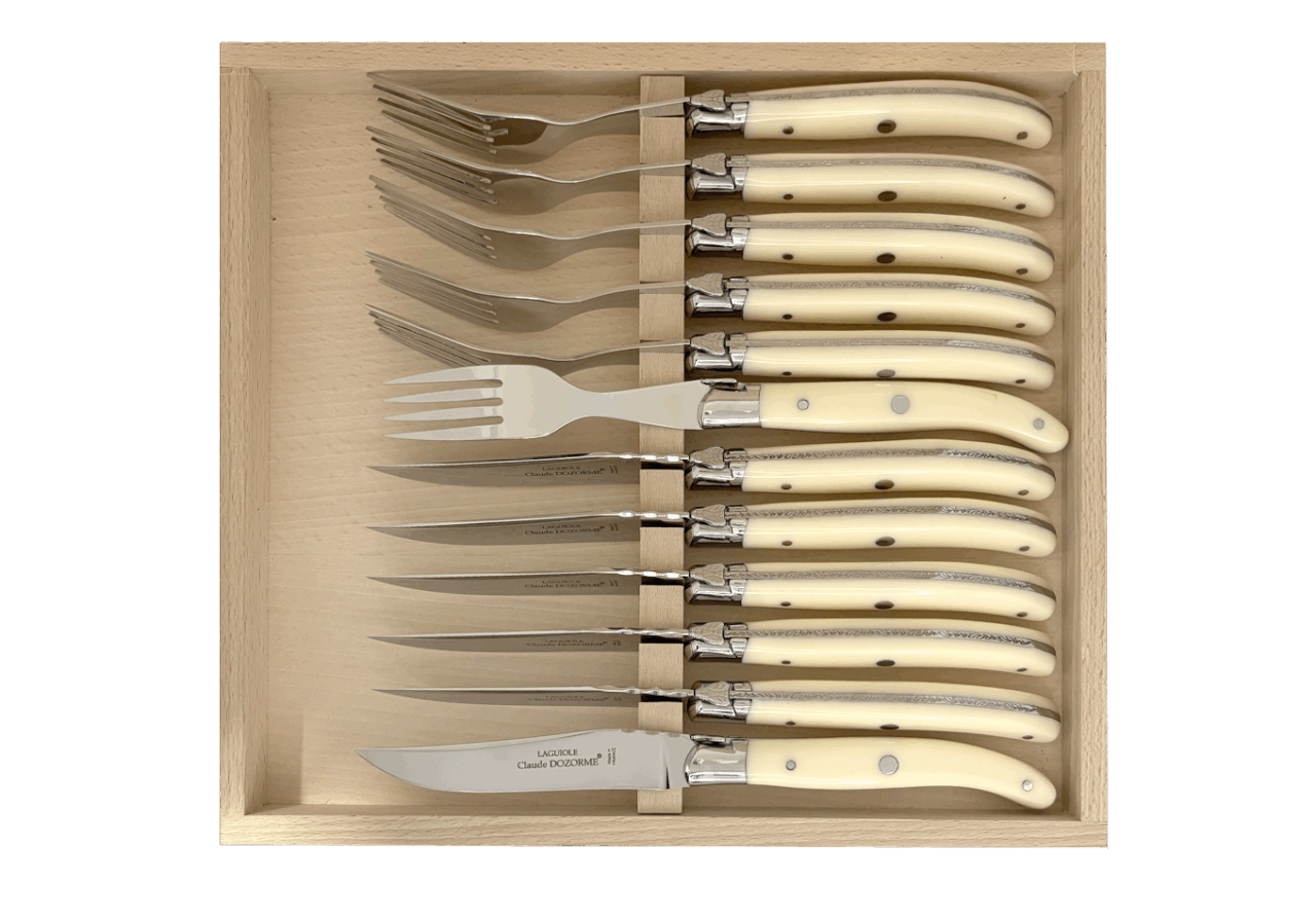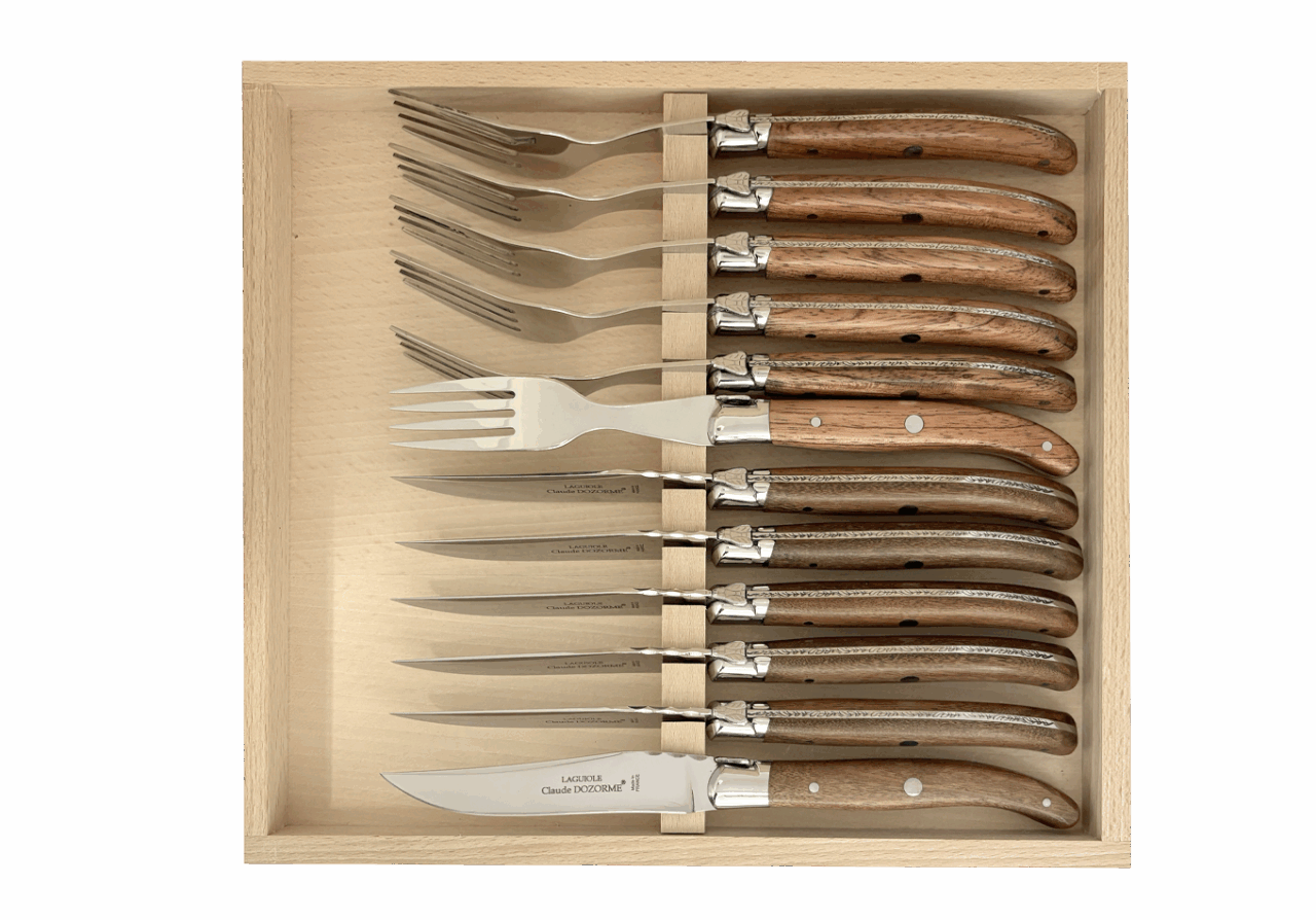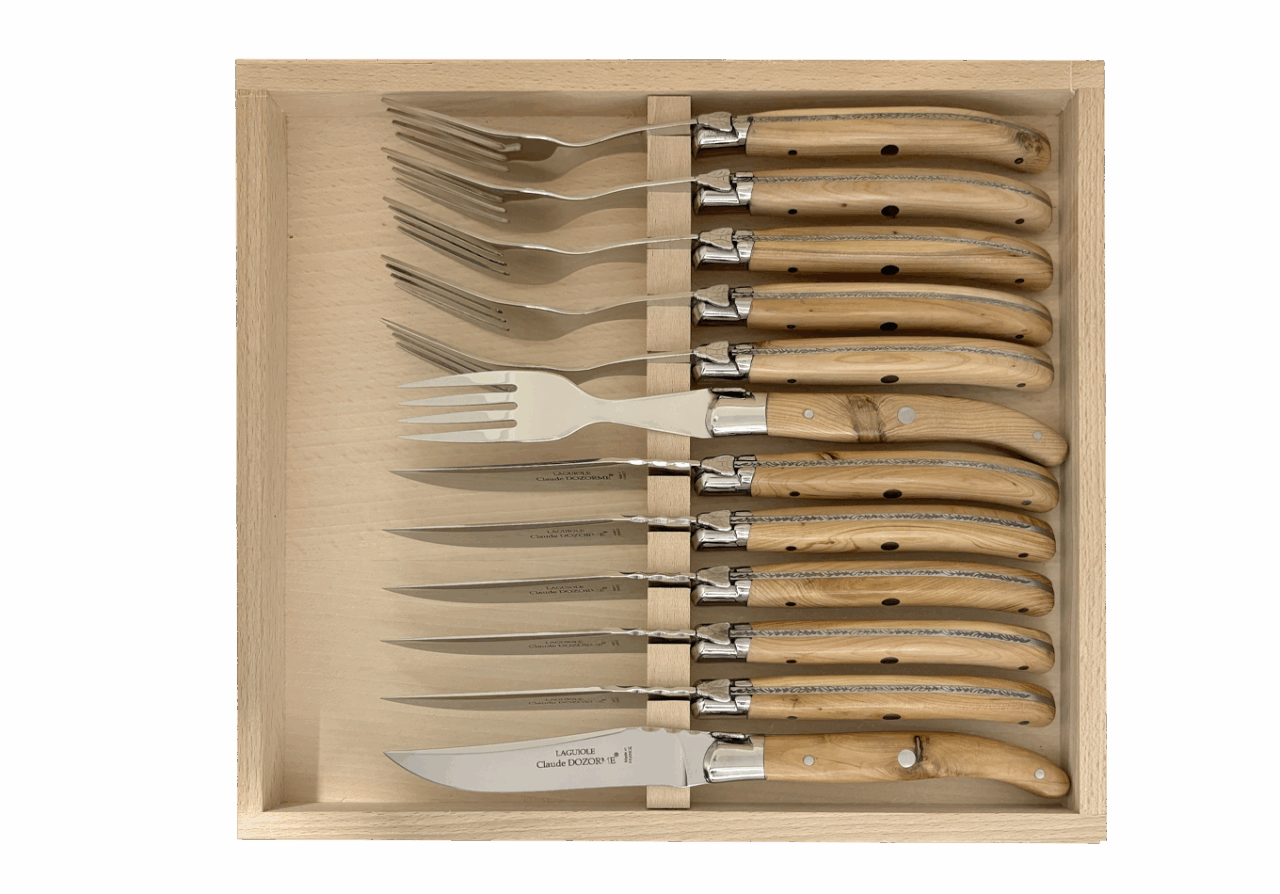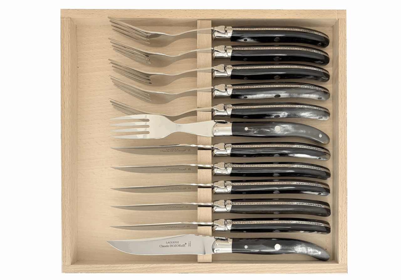 Claude DOZORME fut le premier fabricant français à adapter ce couteau mythique à la table avec une lame fixe. Il occupe aujourd’hui une place centrale dans l’univers Table de notre Maison. Avec un design distinctif signé Claude DOZORME, cette icône du couteau est sans cesse améliorée et renouvelée dans nos ateliers, avec toujours la même qualité irréprochable. Ce Laguiole ne craint aucune concurrence !