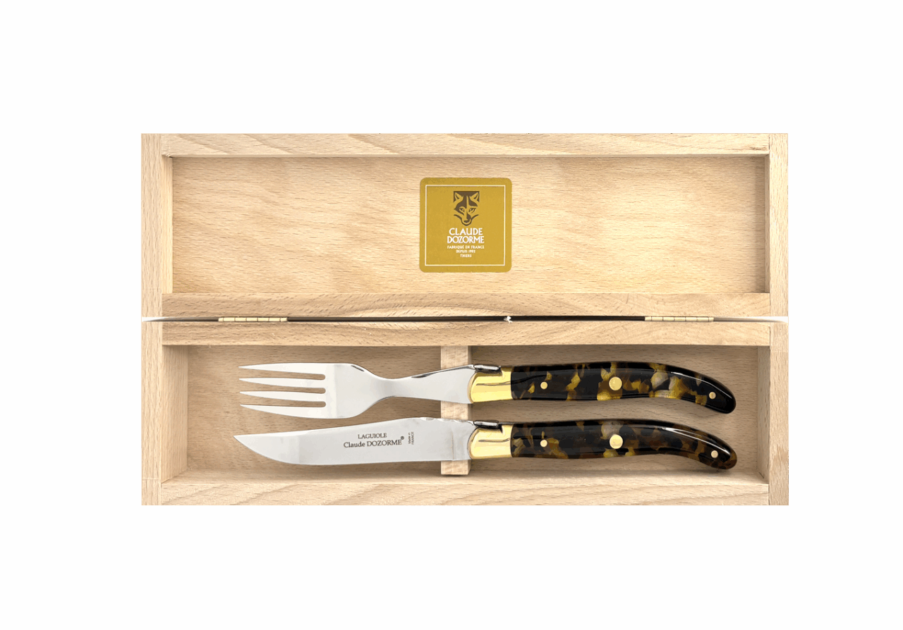 Claude DOZORME fut le premier fabricant français à adapter ce couteau mythique à la table avec une lame fixe. Il occupe aujourd’hui une place centrale dans l’univers Table de notre Maison. Avec un design distinctif signé Claude DOZORME, cette icône du couteau est sans cesse améliorée et renouvelée dans nos ateliers, avec toujours la même qualité irréprochable. Ce Laguiole ne craint aucune concurrence !