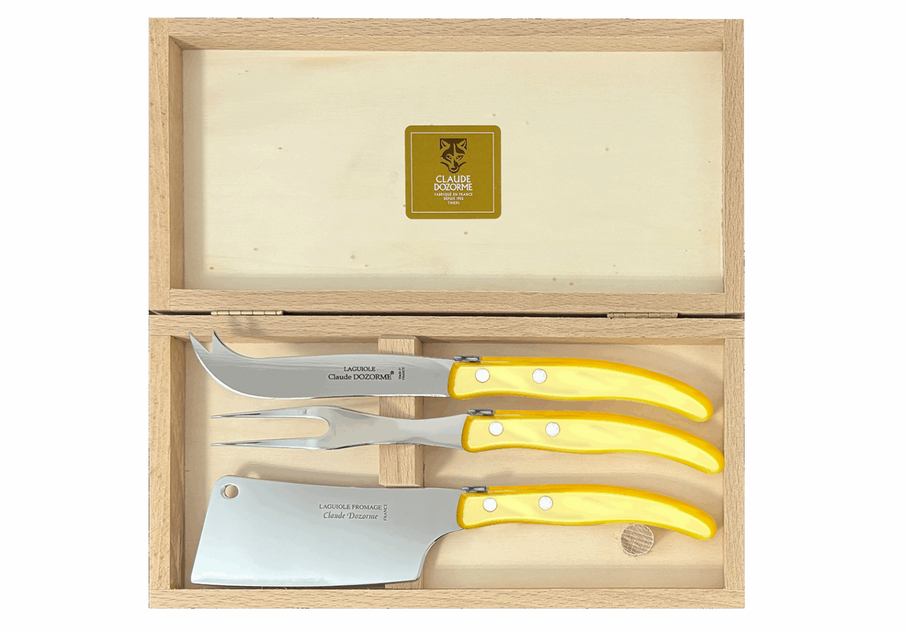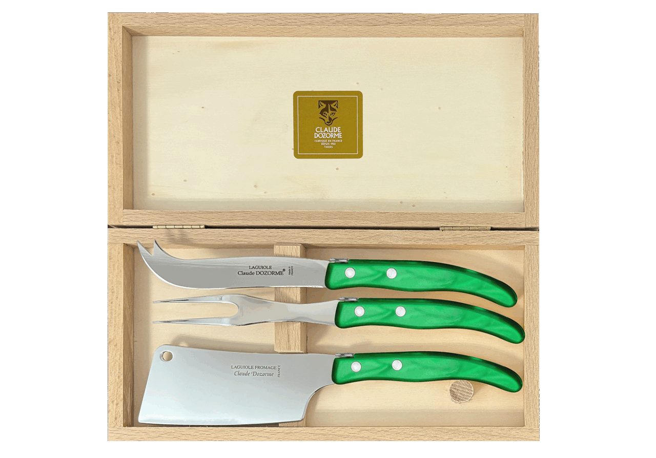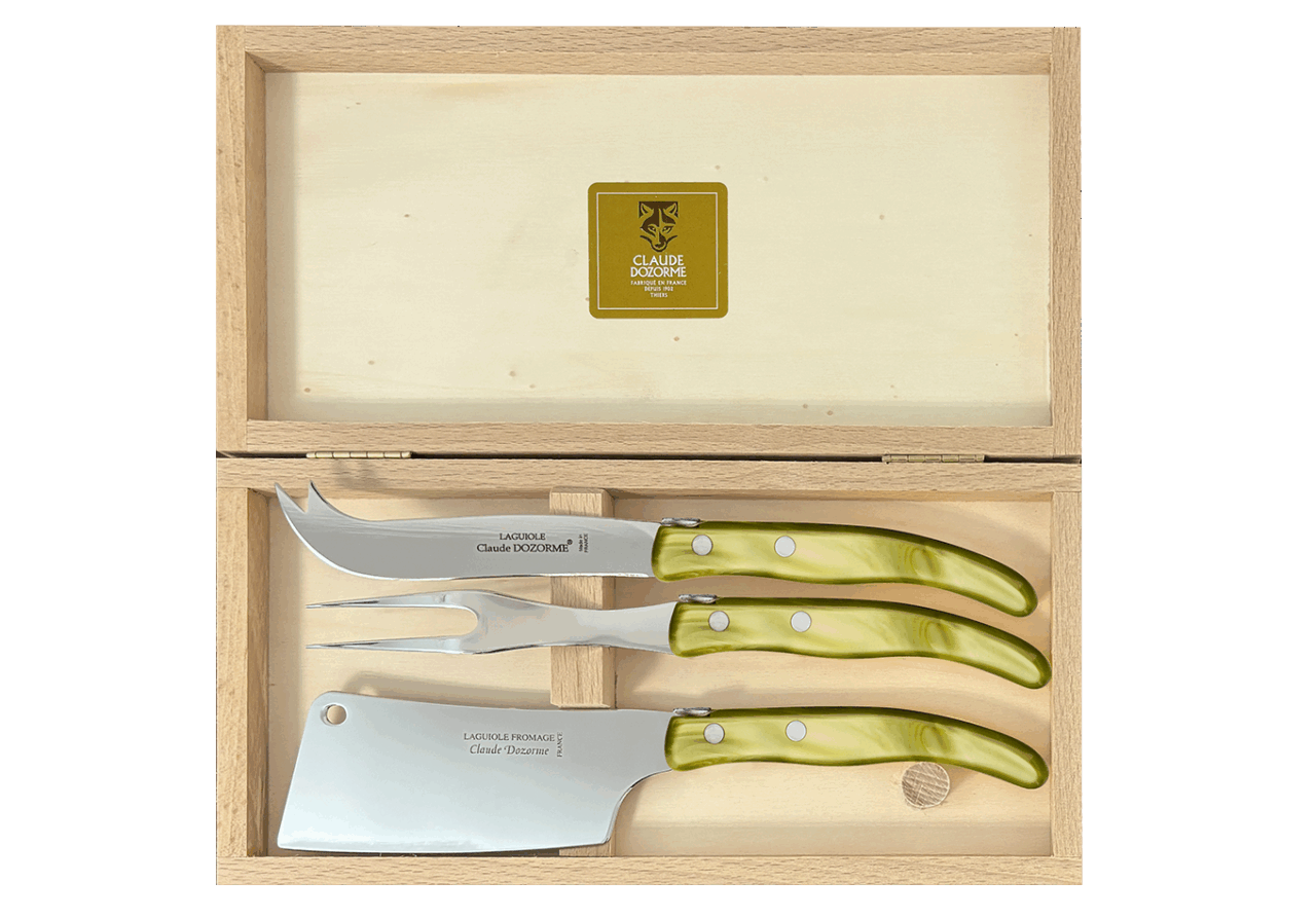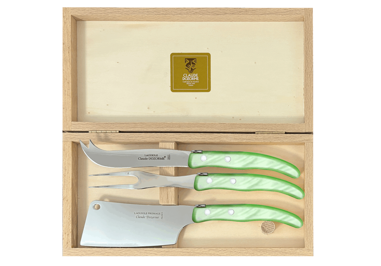 Cet ensemble de service à fromage Berlingot est conçu pour un usage quotidien et passe au lave-vaisselle. Le couteau à fromage permet de découper le fromage sans que celui-ci ne colle. Conçu spécialement pour les fromages à pâte molle. Avec une large lame, la hachette permet de faciliter la découpe des fromages à pâte friable comme le chèvre. La fourchette à fromage quant à elle, possède deux dents pour piquer les morceaux de fromage afin d’avoir un service optimal. Notre gamme Berlingot apporte de la couleur dans votre cuisine et sur vos tables.