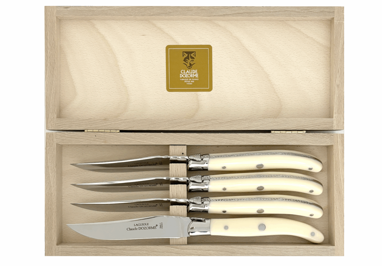 Claude DOZORME fut le premier fabricant français à adapter ce couteau mythique à la table avec une lame fixe. Il occupe aujourd’hui une place centrale dans l’univers Table de notre Maison. Avec un design distinctif signé Claude DOZORME, cette icône du couteau est sans cesse améliorée et renouvelée dans nos ateliers, avec toujours la même qualité irréprochable. Ce Laguiole ne craint aucune concurrence !