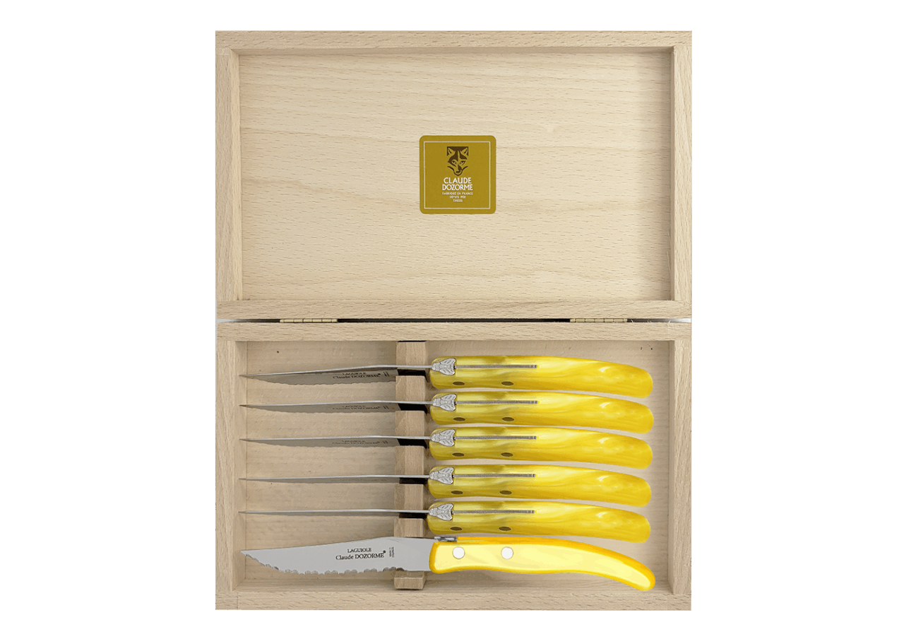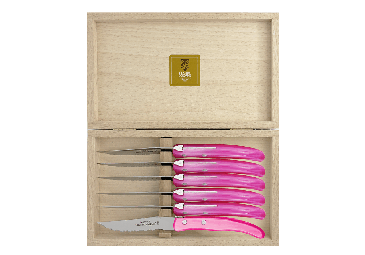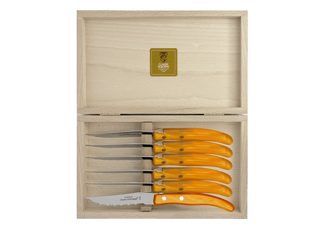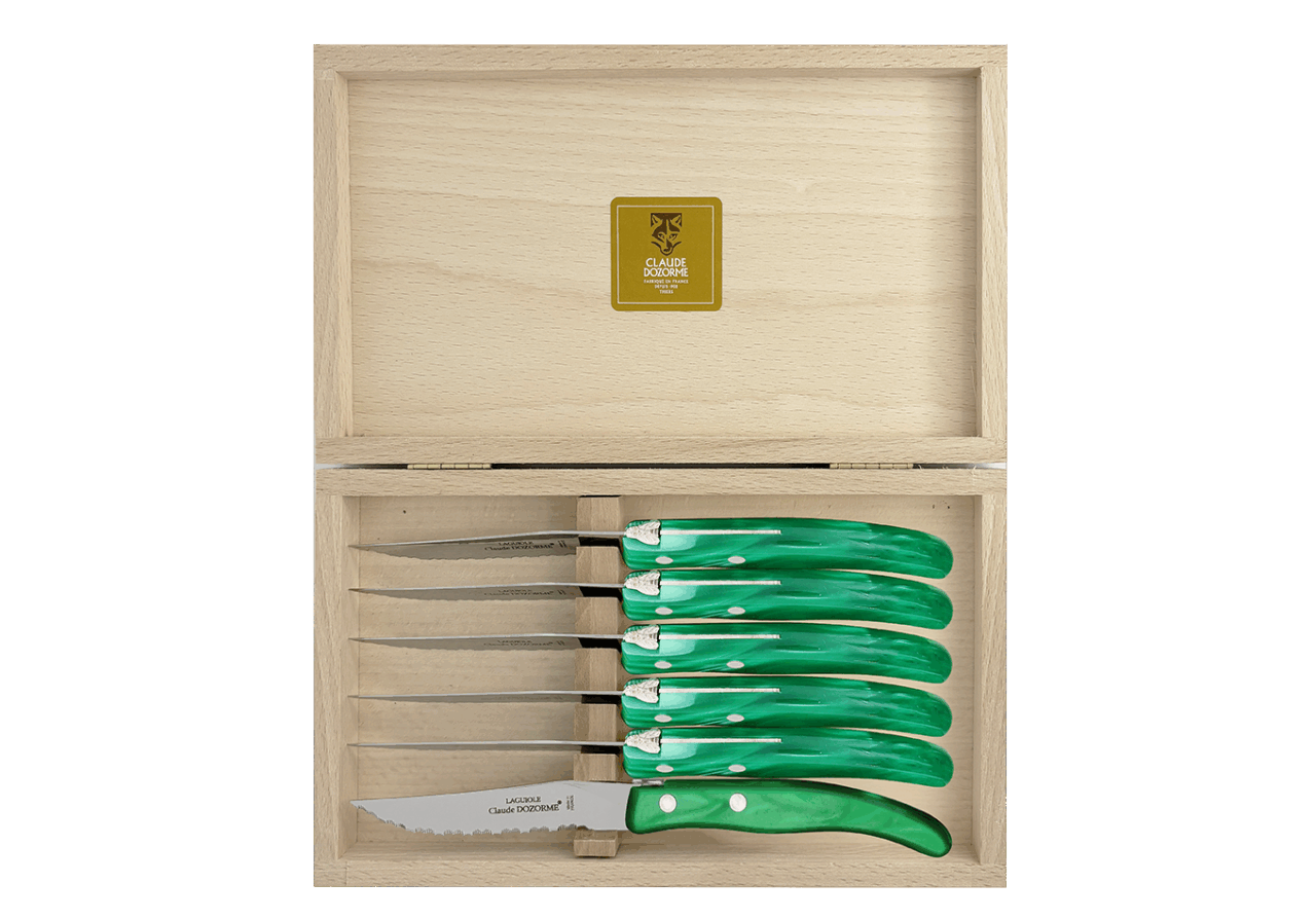Le couteau Berlingot est conçu pour un usage quotidien et passe au lave-vaisselle. La microdenture de la lame des couteaux à steak est faite manuellement. Fine et précise, cette microdenture est extrêmement tranchante, et ne déchire pas la viande. N’hésitez pas à mélanger les couleurs avec les panachés Claude DOZORME. Notre gamme Berlingot apporte de la couleur dans votre cuisine et sur vos tables.