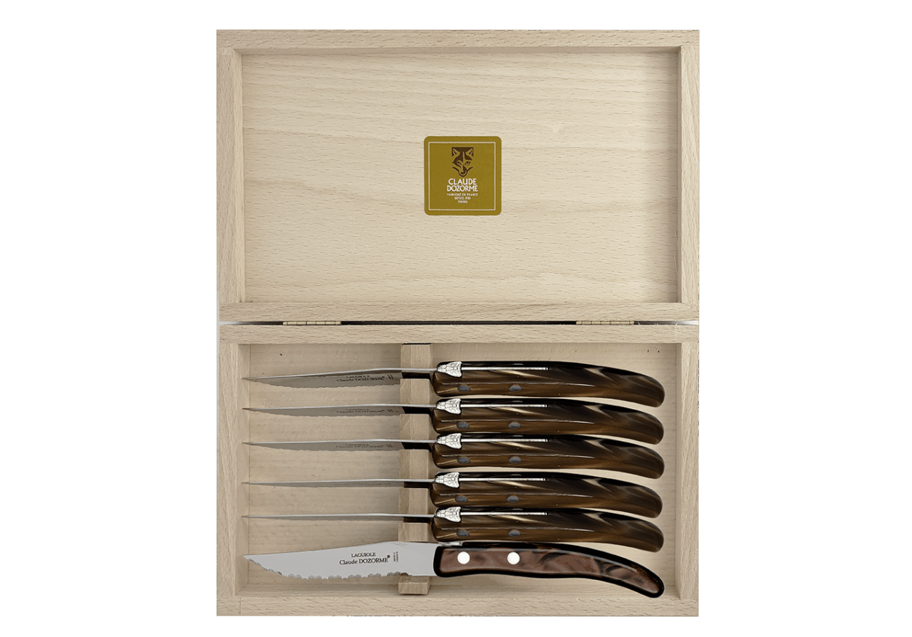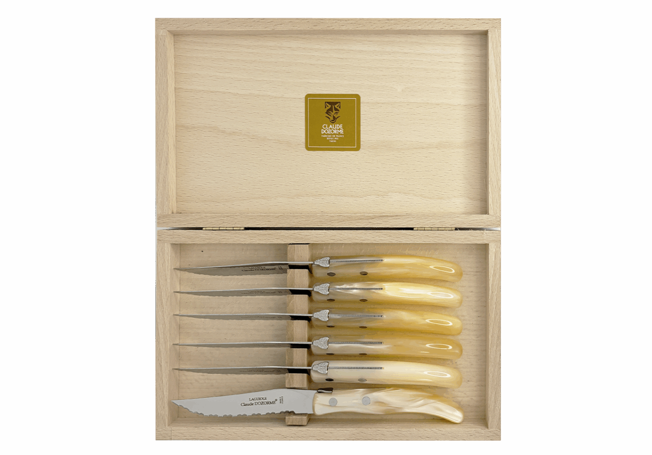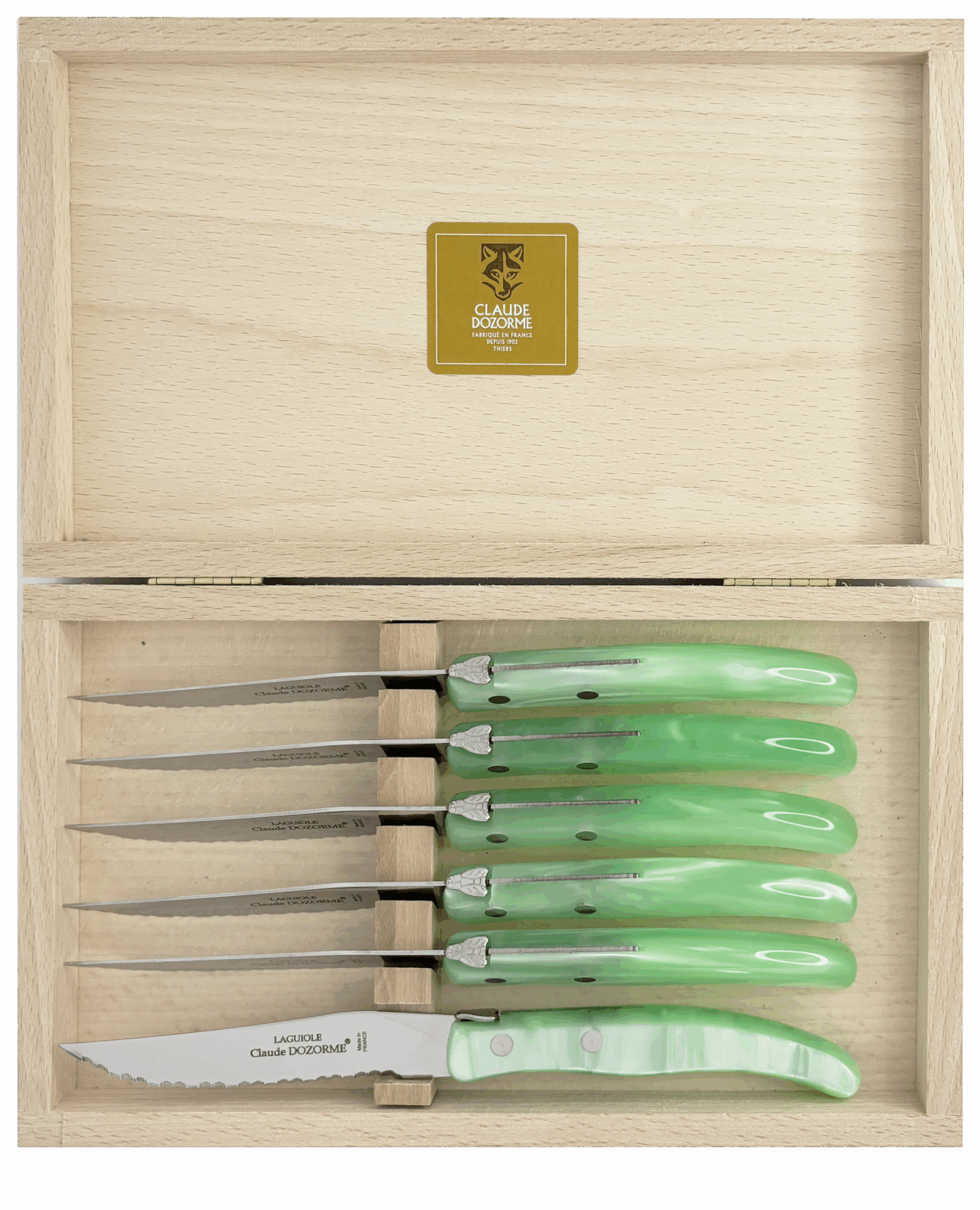 Le couteau Berlingot est conçu pour un usage quotidien et passe au lave-vaisselle. La microdenture de la lame des couteaux à steak est faite manuellement. Fine et précise, cette microdenture est extrêmement tranchante, et ne déchire pas la viande. N’hésitez pas à mélanger les couleurs avec les panachés Claude DOZORME. Notre gamme Berlingot apporte de la couleur dans votre cuisine et sur vos tables.