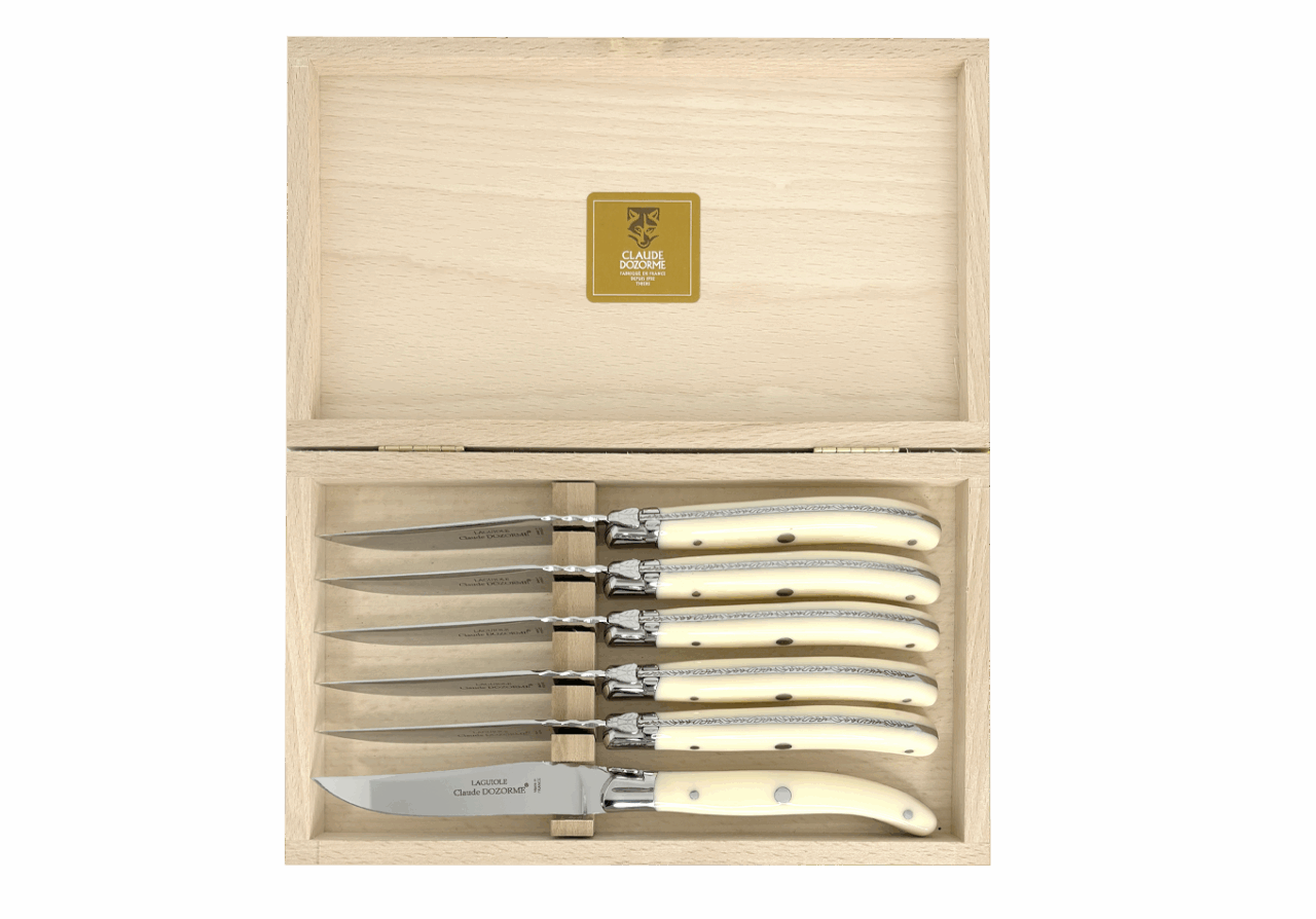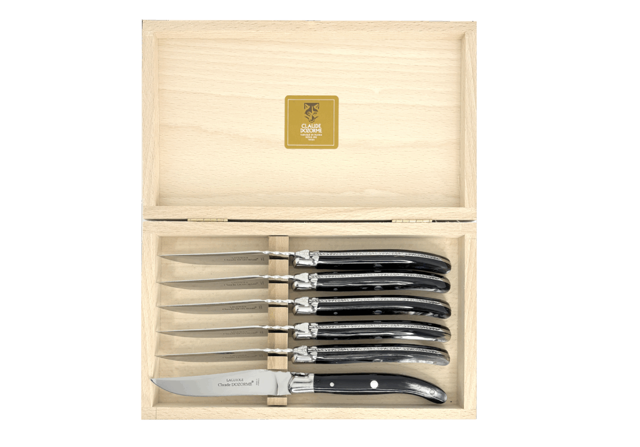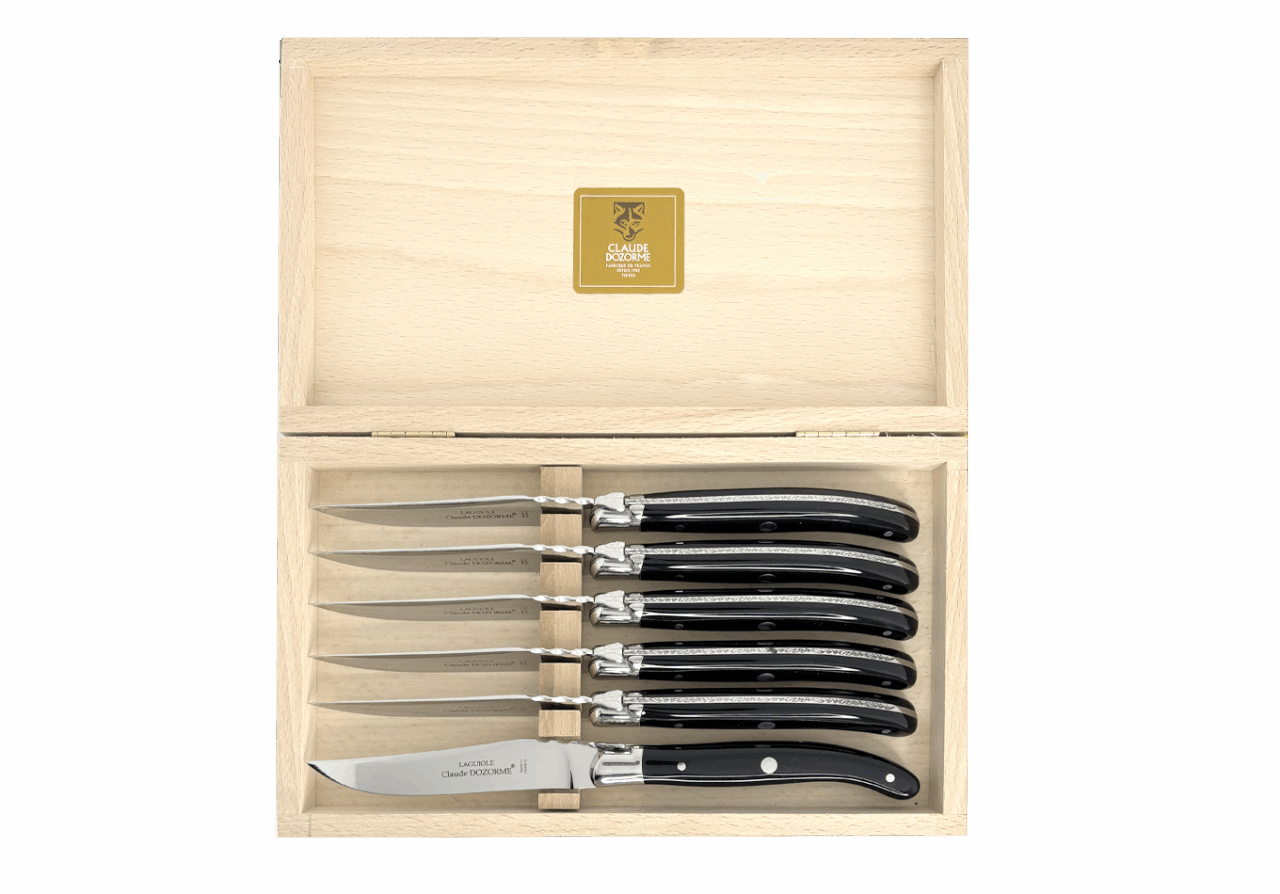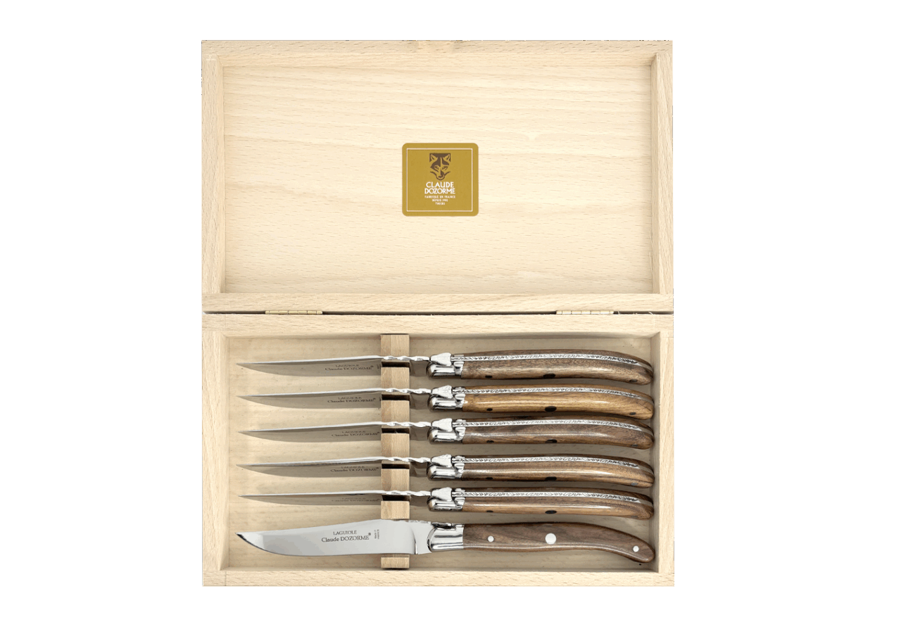 Claude DOZORME fut le premier fabricant français à adapter ce couteau mythique à la table avec une lame fixe. Il occupe aujourd’hui une place centrale dans l’univers Table de notre Maison. Avec un design distinctif signé Claude DOZORME, cette icône du couteau est sans cesse améliorée et renouvelée dans nos ateliers, avec toujours la même qualité irréprochable. Ce Laguiole ne craint aucune concurrence !