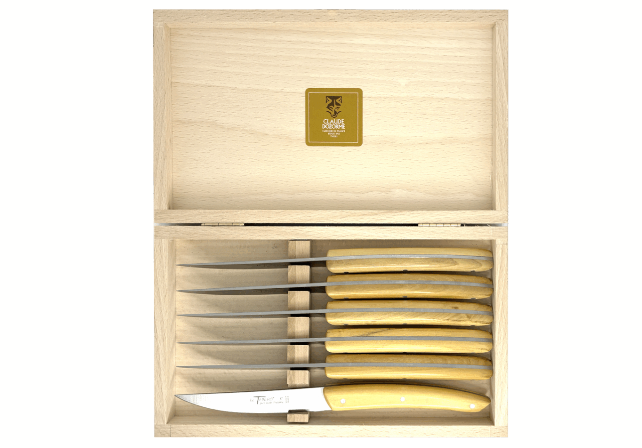 Son manche en bois, inox, metacrylate ou bakélite habillera vos tables tout en vous assurant une excellente coupe lors de son utilisation.