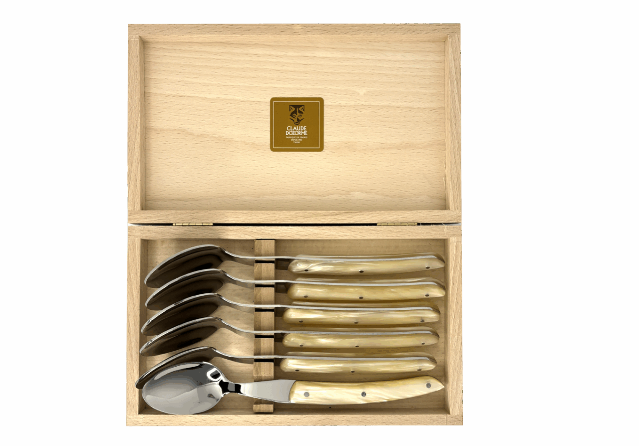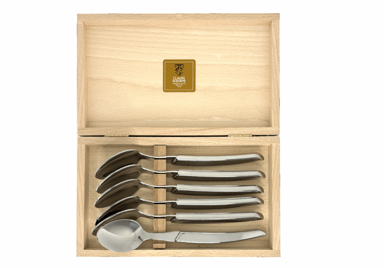 Disponible dans un Coffret hêtre de 6 cuillières à soupe, idéal pour offrir ou s’offrir.