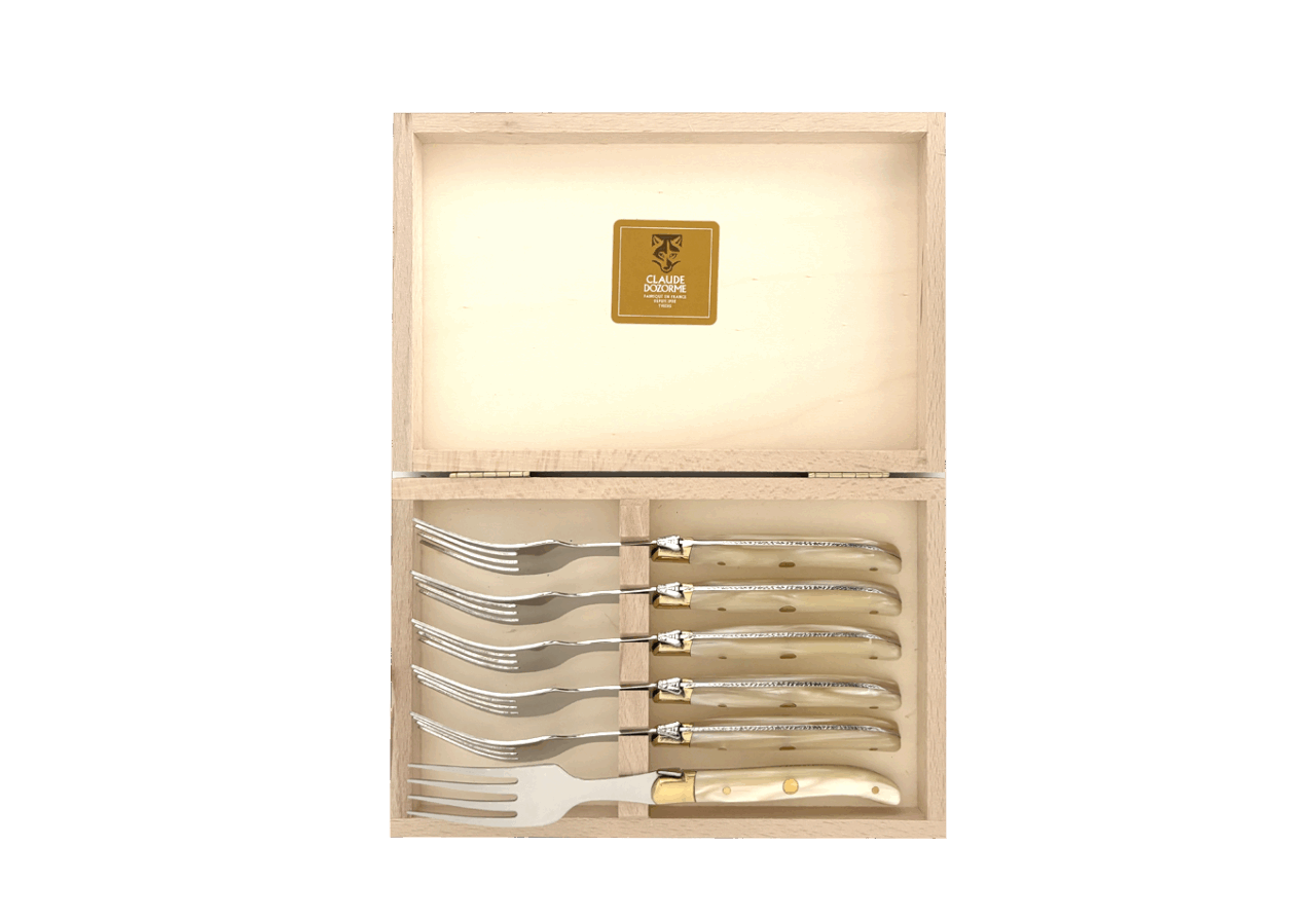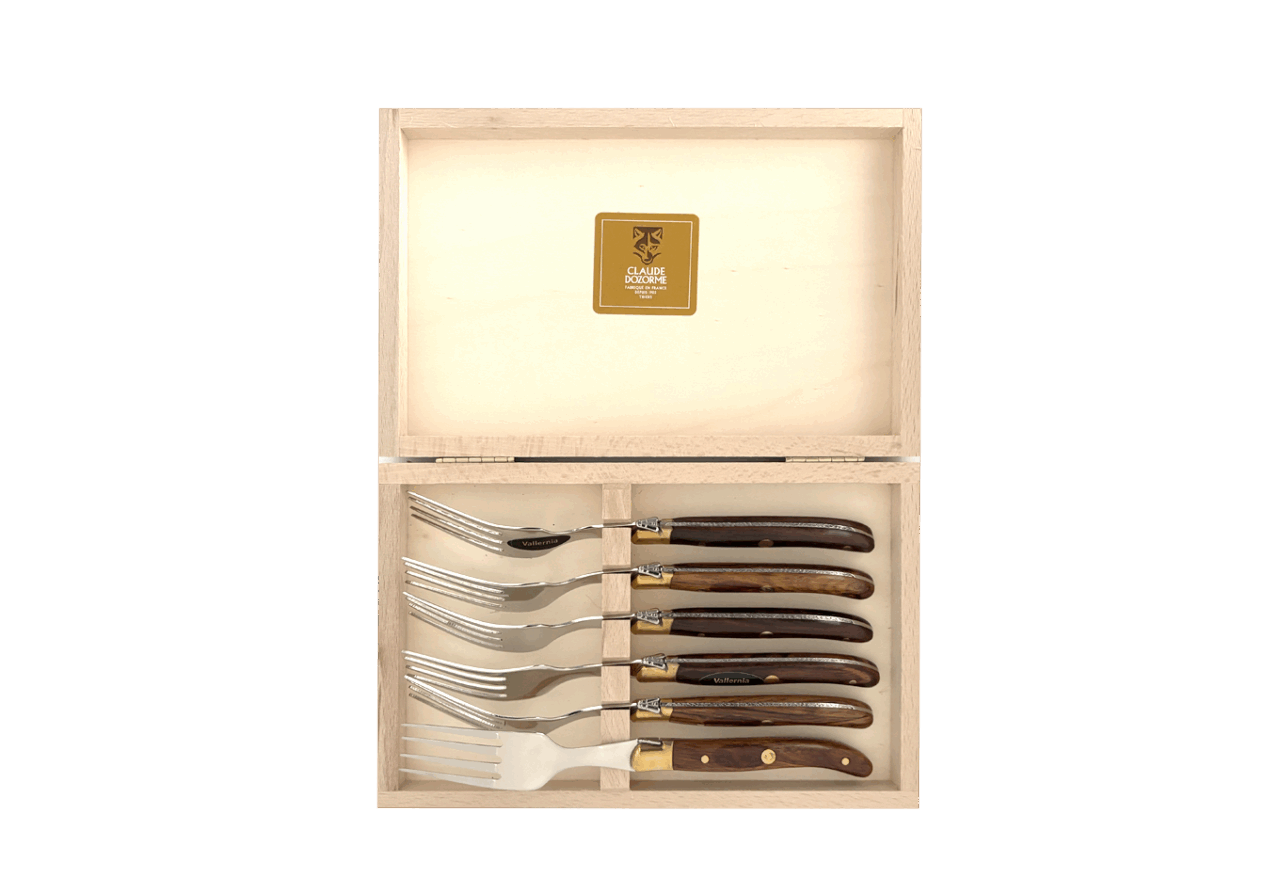 Plus petite qu’une fourchette à steak, la fourchette à dessert Laguiole est conçue spécialement pour déguster le dessert. Elle peut également servir de fourchette enfant. La mitre en laiton, située à la jonction entre le manche et la lame, ajoute une touche de sophistication et de robustesse. Cette mitre en laiton ajoute à cet objet une grande élégance.