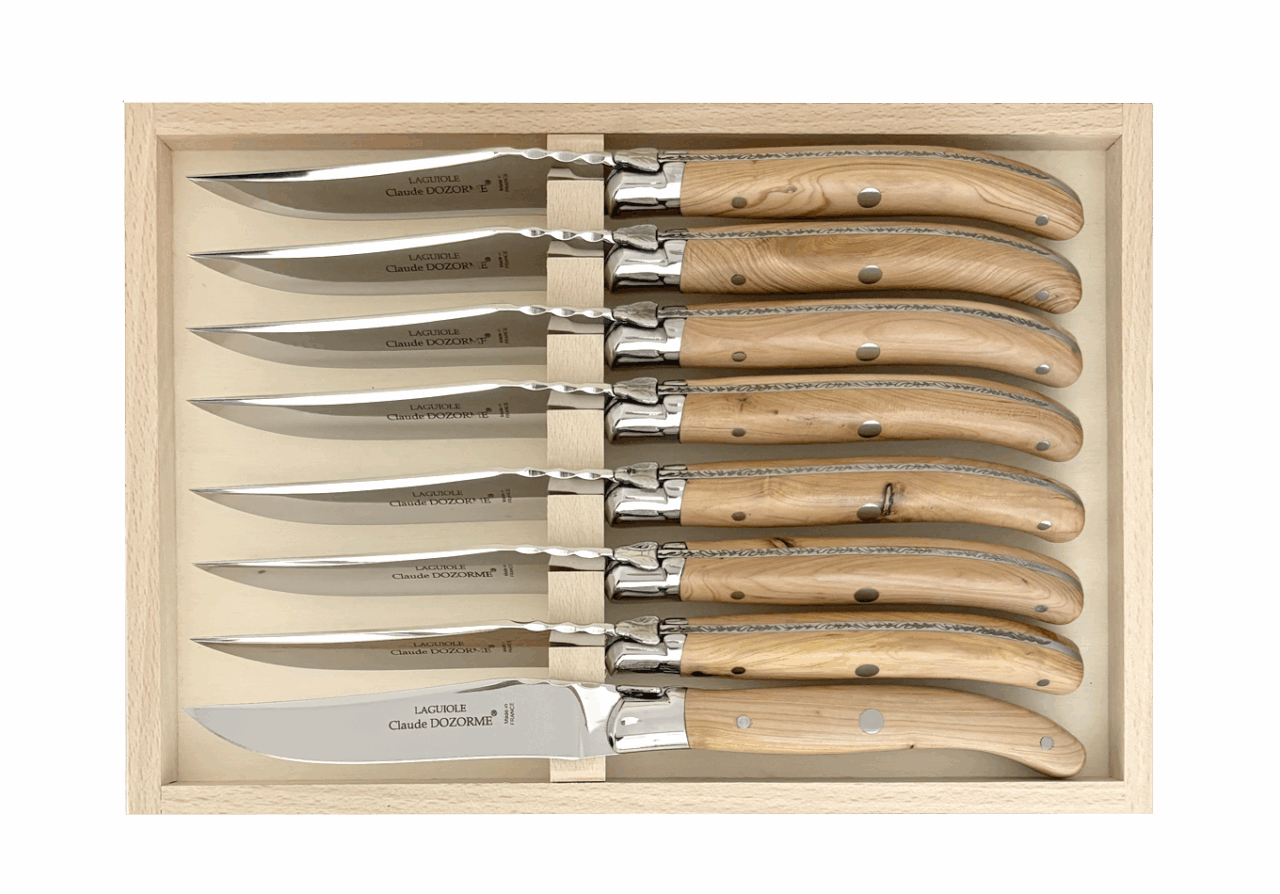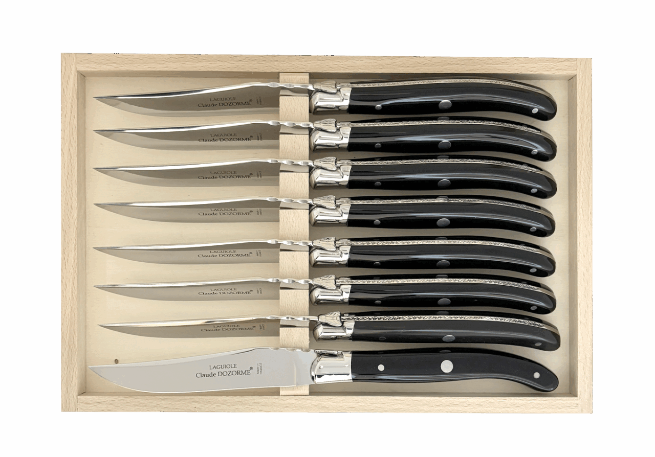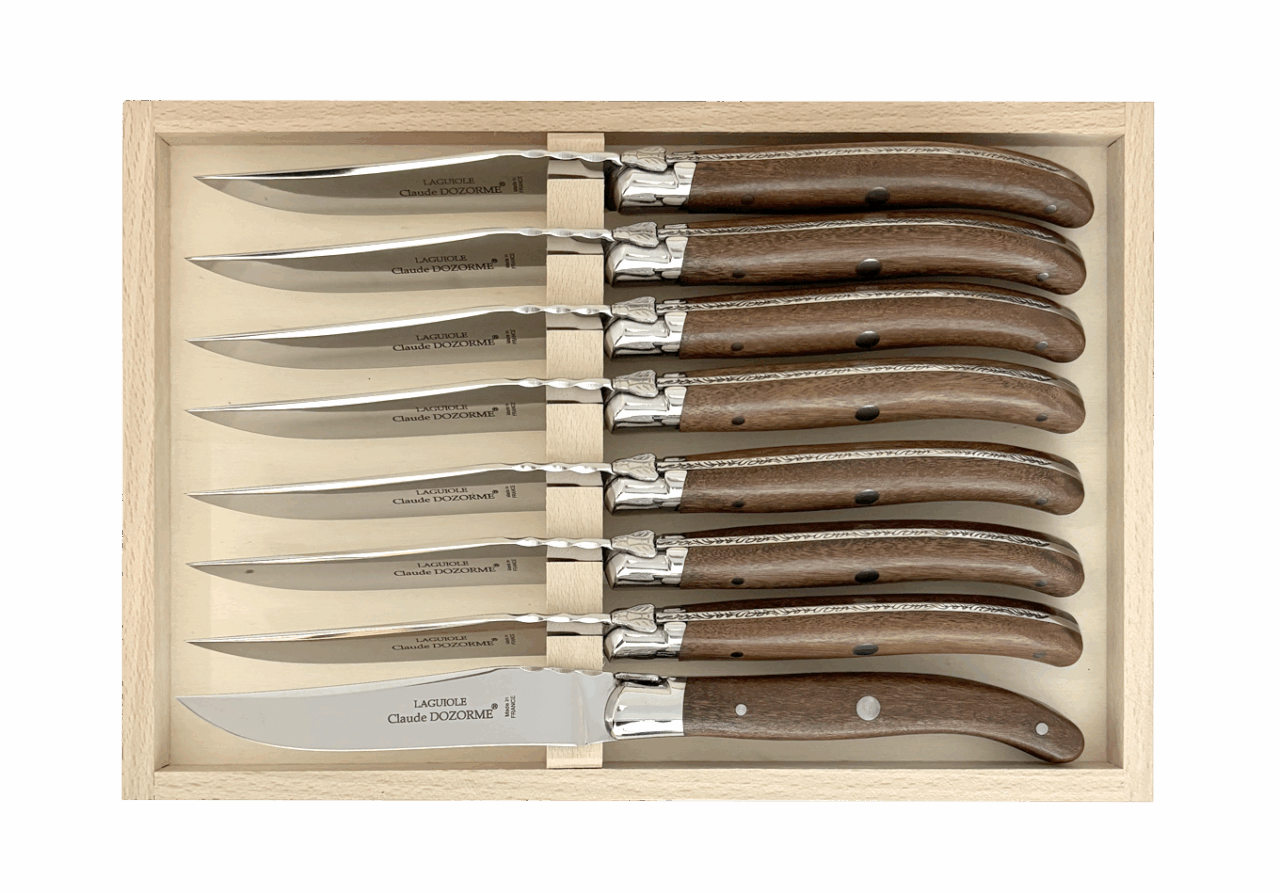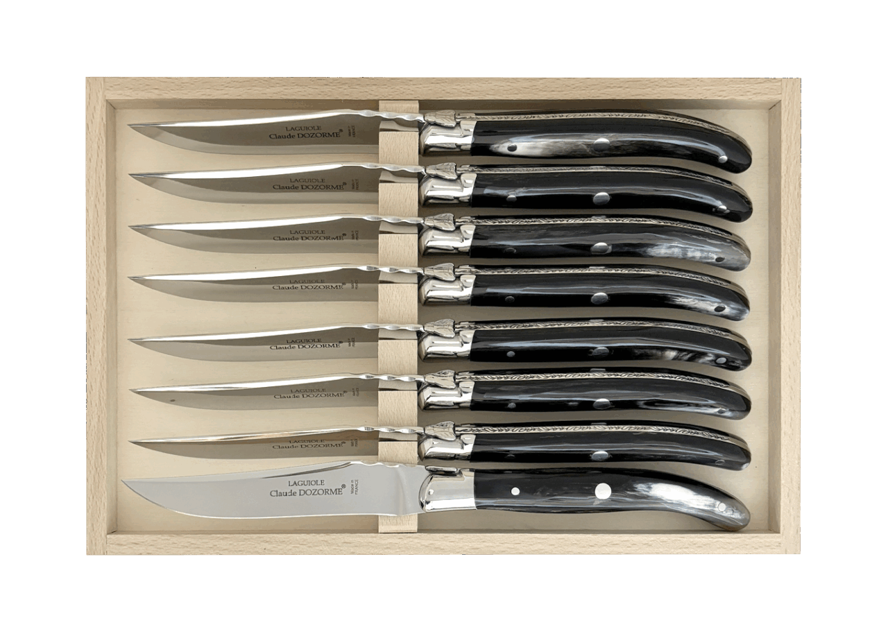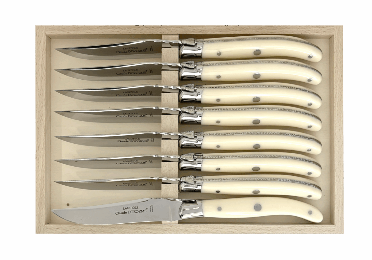 Claude DOZORME fut le premier fabricant français à adapter ce couteau mythique à la table avec une lame fixe. Il occupe aujourd’hui une place centrale dans l’univers Table de notre Maison. Avec un design distinctif signé Claude DOZORME, cette icône du couteau est sans cesse améliorée et renouvelée dans nos ateliers, avec toujours la même qualité irréprochable. Ce Laguiole ne craint aucune concurrence !
