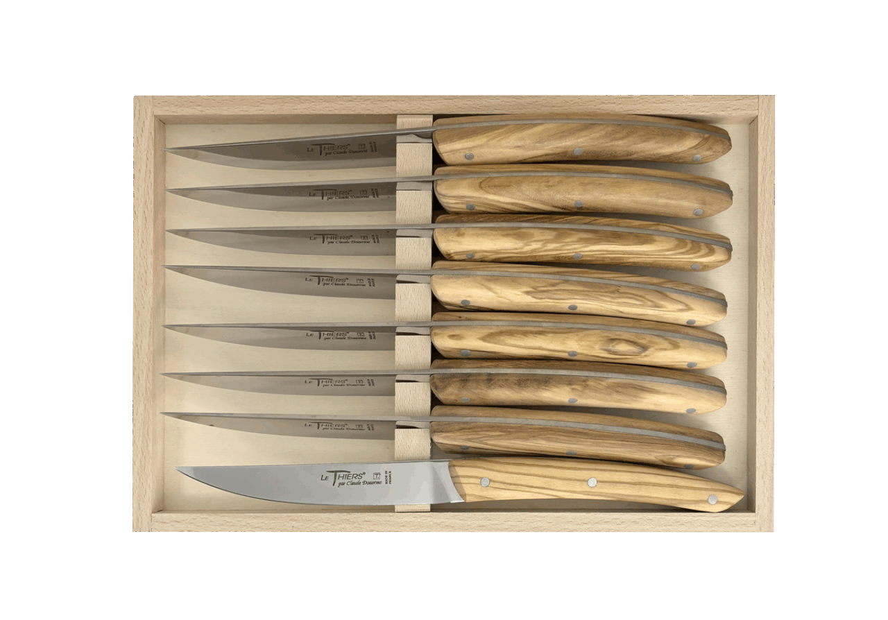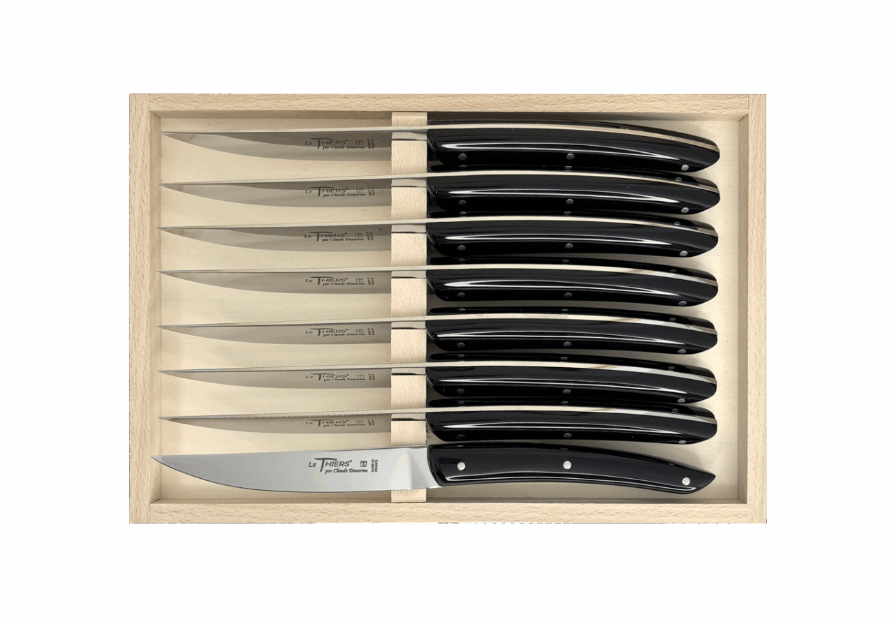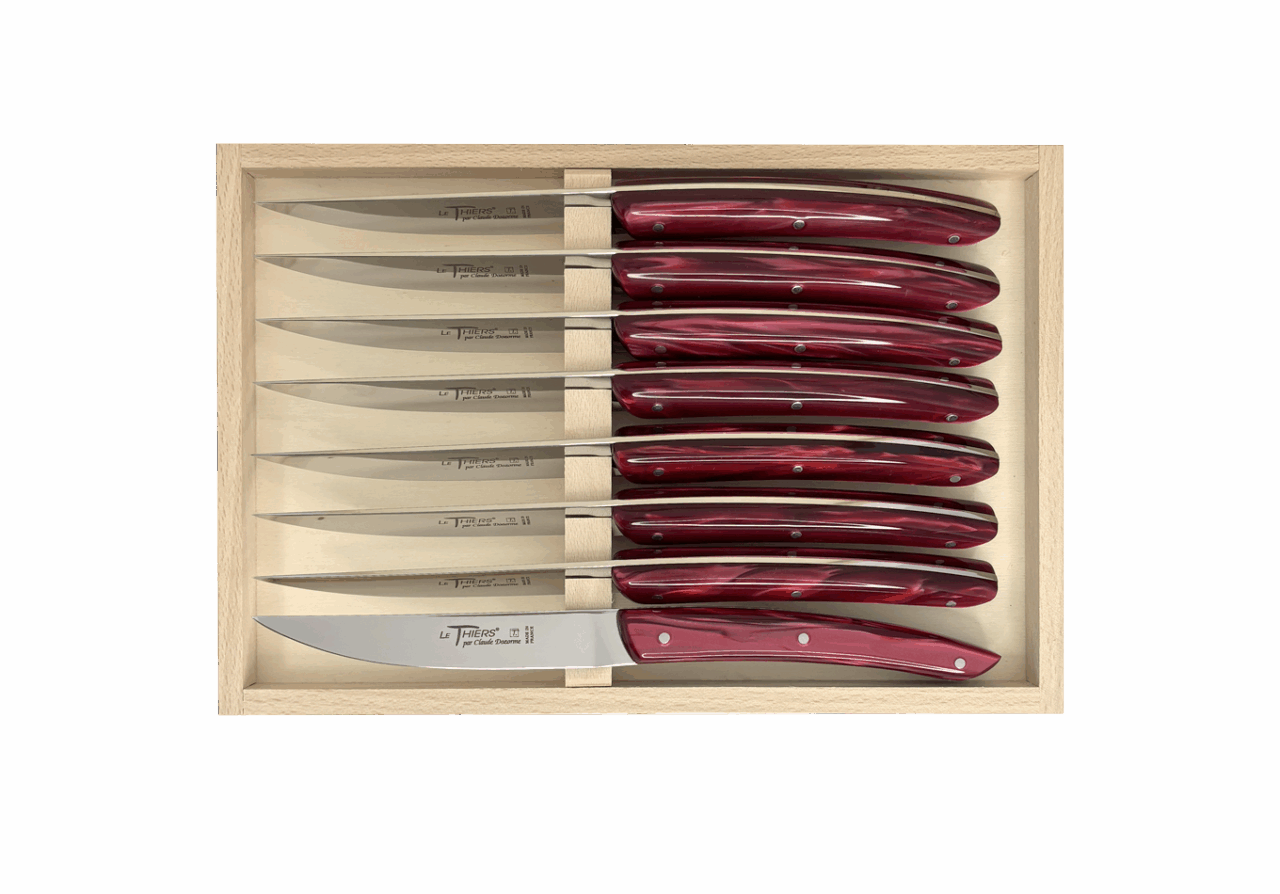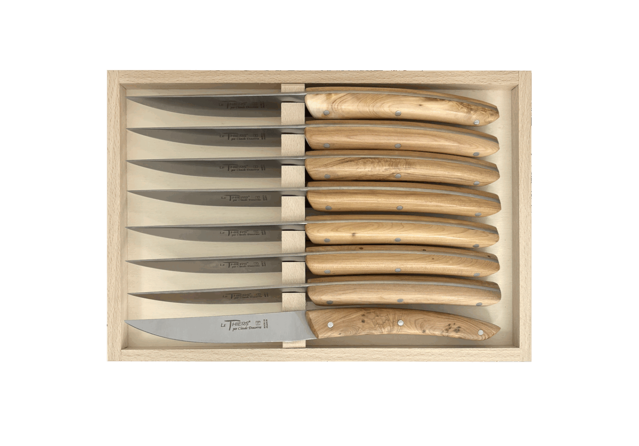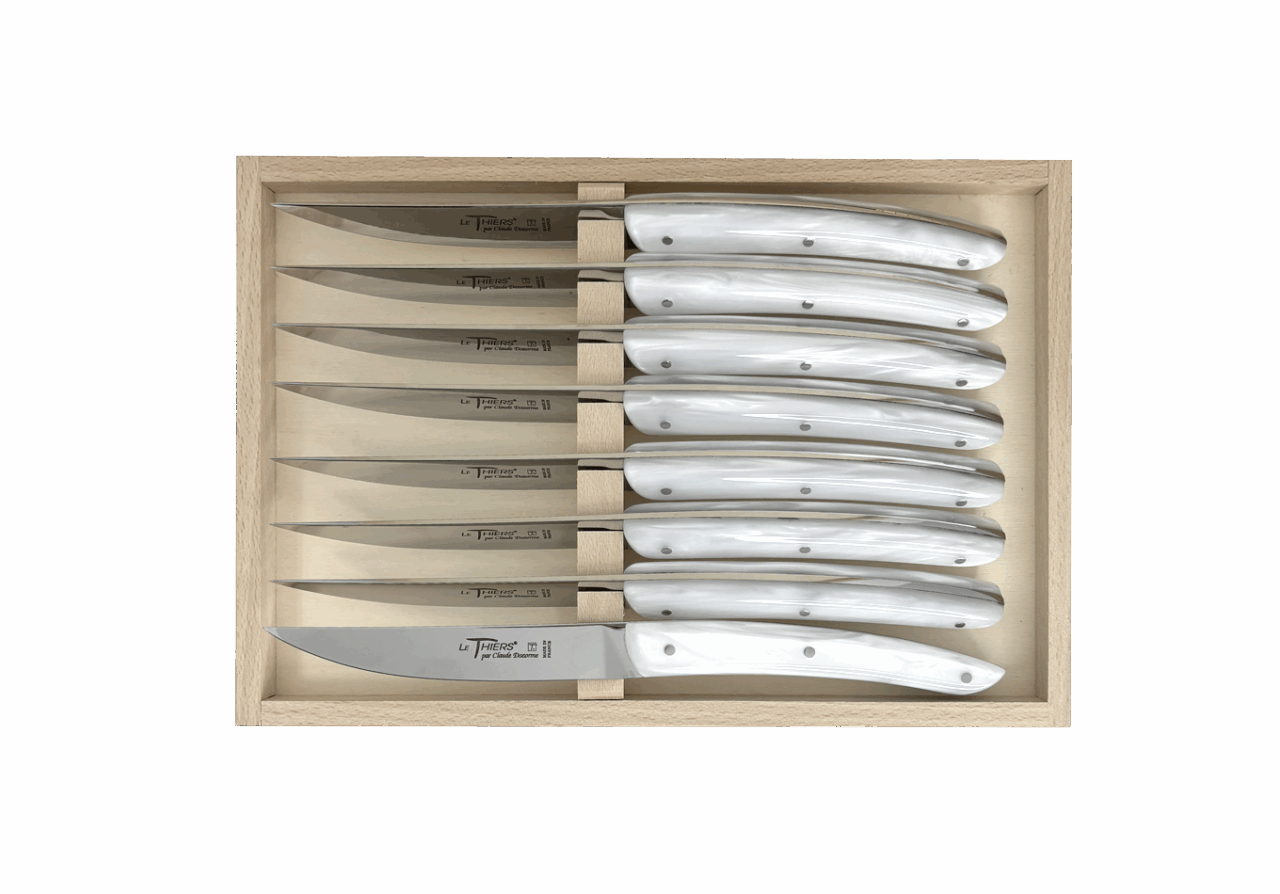 Son manche en bois, inox, metacrylate ou bakélite habillera vos tables tout en vous assurant une excellente coupe lors de son utilisation.