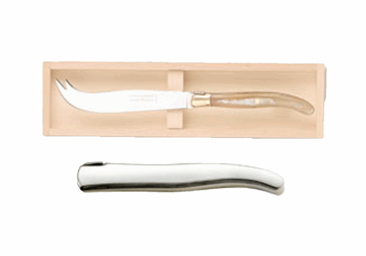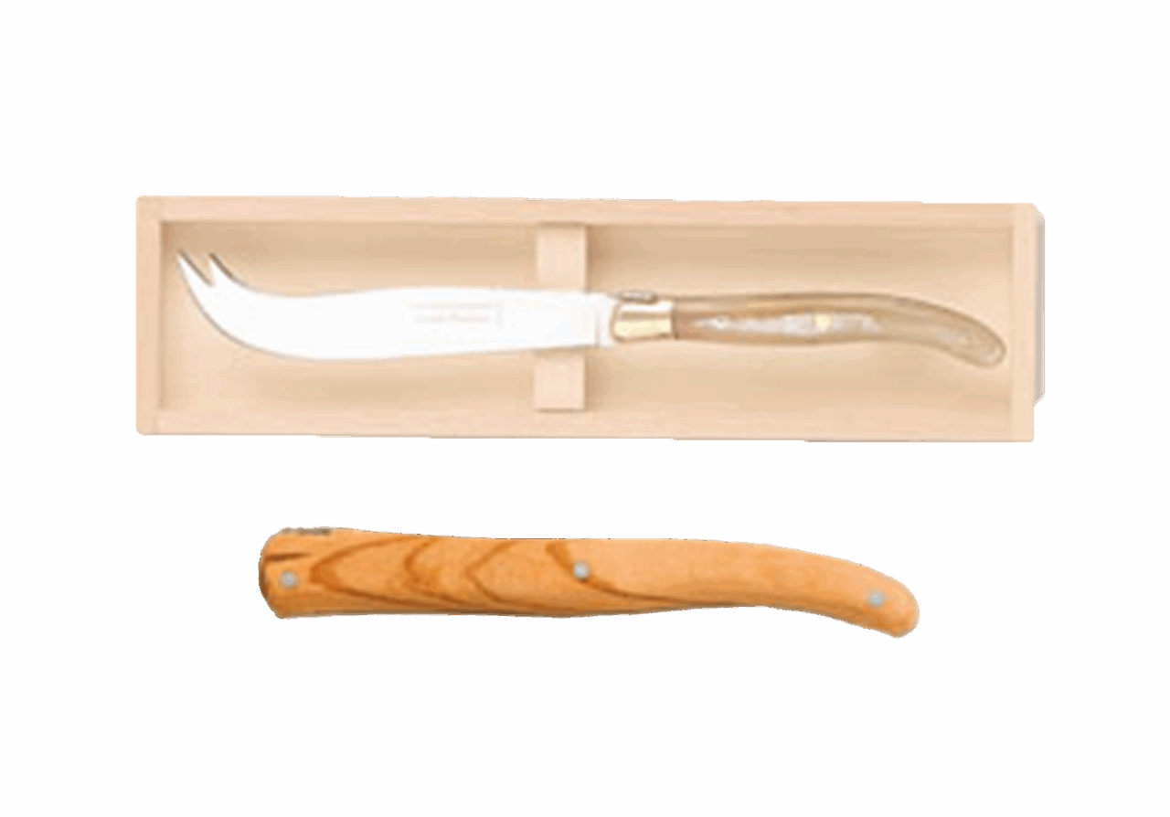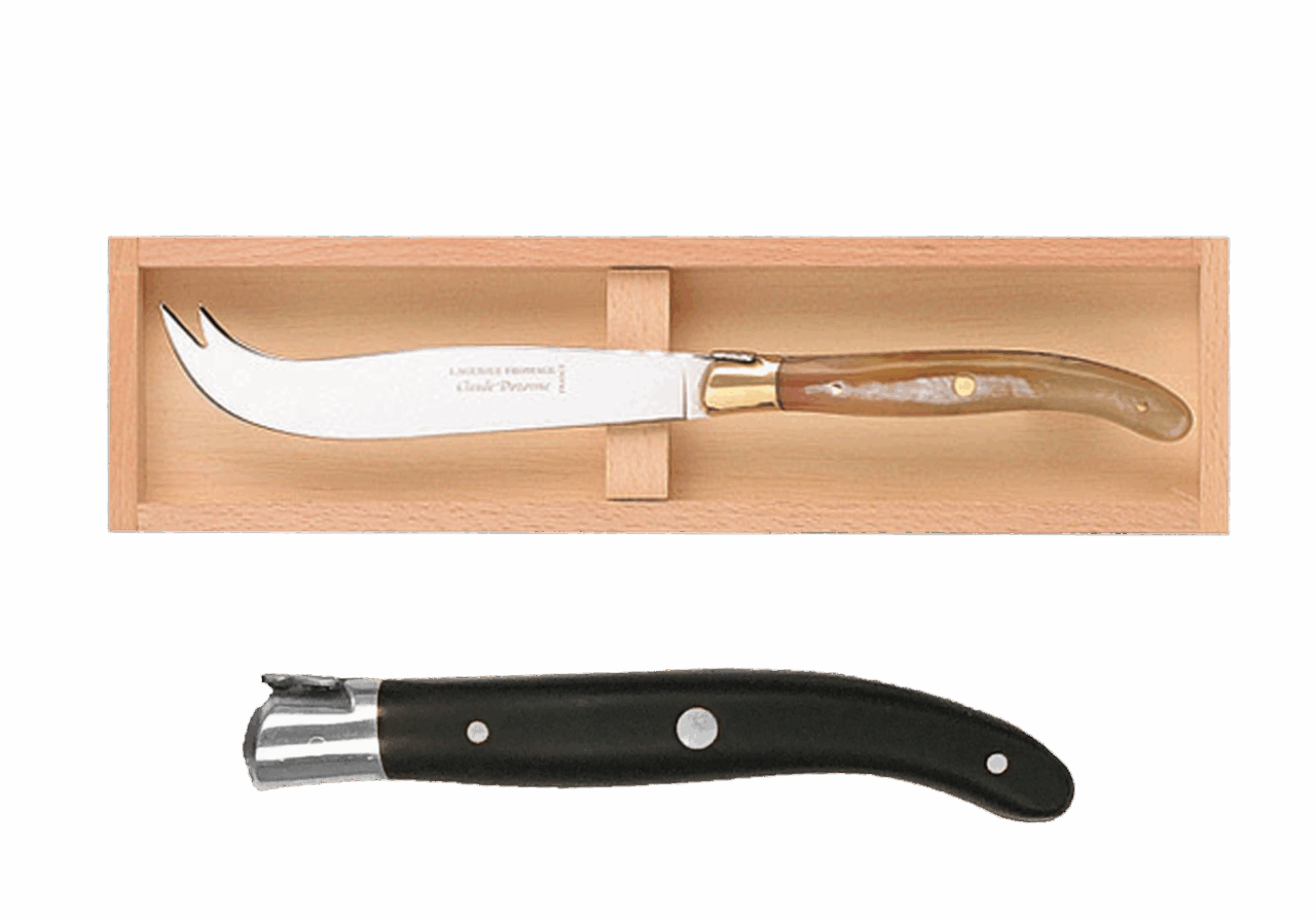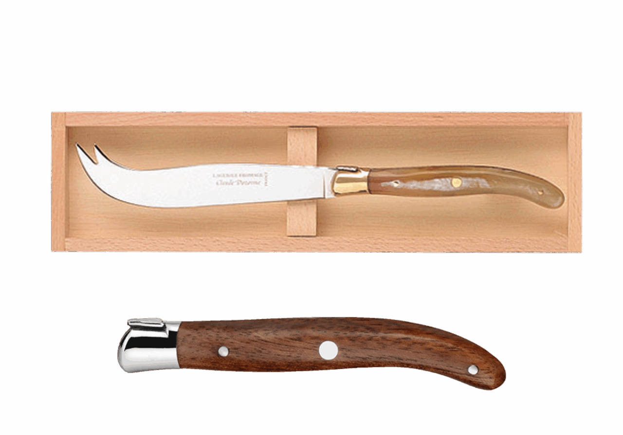 Disponible en manche bois, ivoirine, inox et corne.