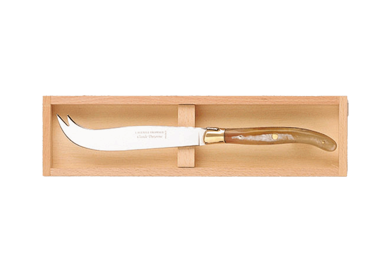 Le monde entier nous envie notre plateau de fromages richement garni ! On va aussi nous envier nos couteaux ! Typiquement français, ce moment du repas n’a pas échappé au savoir-faire du Maître Coutelier, qui propose une grande sélection de modèles. Du couteau droit au célèbre « Deux Piques », en passant par le couperet associé à une fourchette, jusqu’à la pochette de sept pièces composée en collaboration avec un MOF* fromager et utilisée dans les meilleurs restaurants, vous aurez le choix.