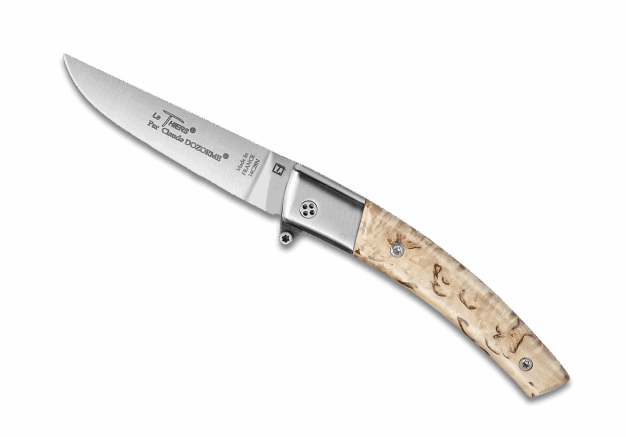 Parmi les couteaux de poche à mécanisme dont la Maison Claude DOZORME a fait son ADN, Le Thiers® à Cames n'a rien à envier aux autres. Il bénéficie de tout le savoir-faire du Maître Coutelier. Son système de verrouillage unique et la possibilité de le démonter intégralement lui donnent son identité, élégamment soulignée par le raffinement de ses manches en matières nobles et son dos guilloché.