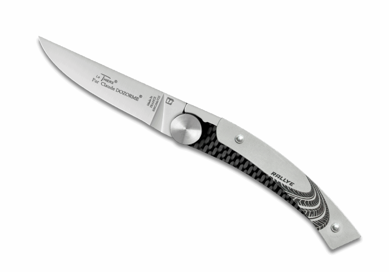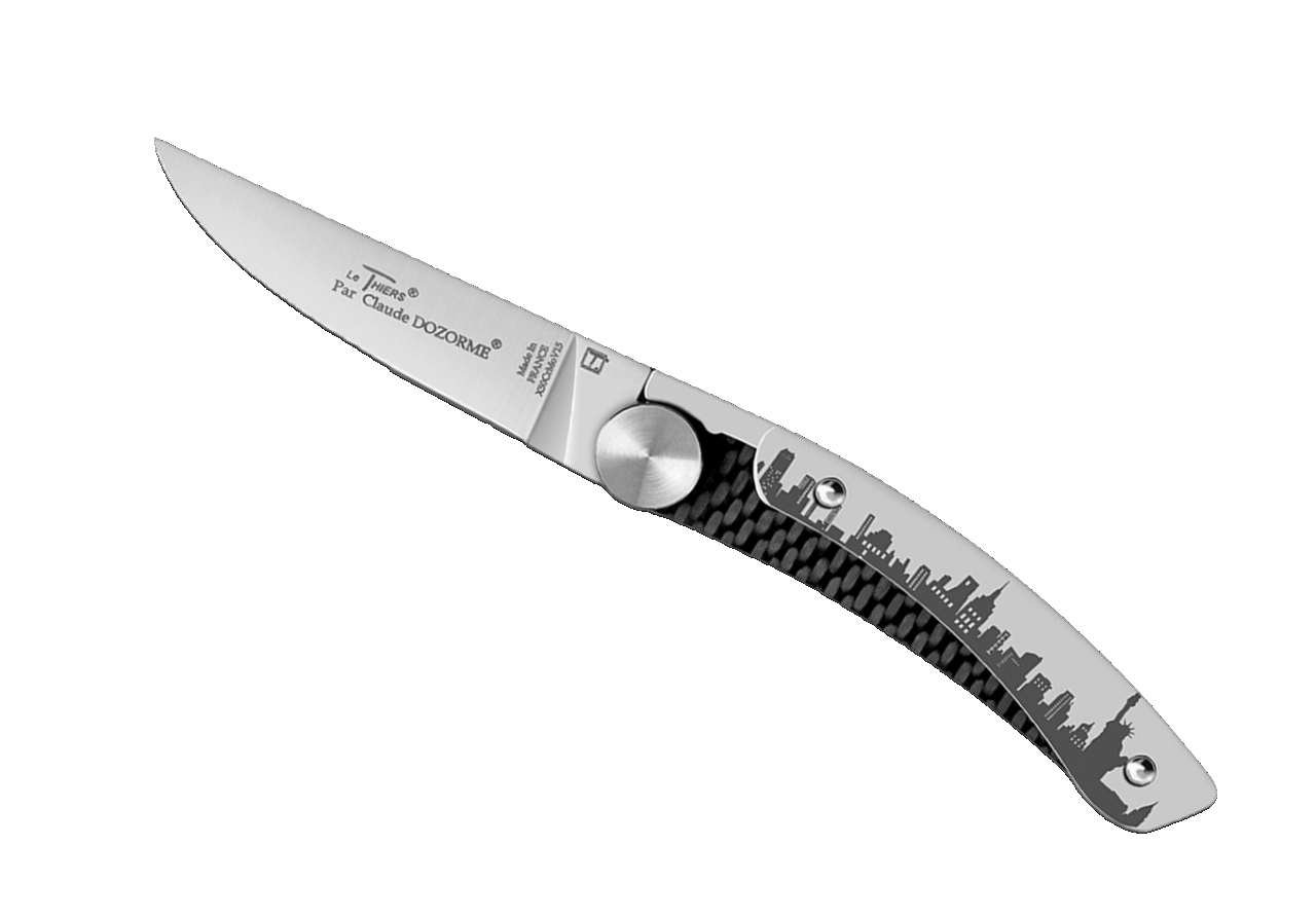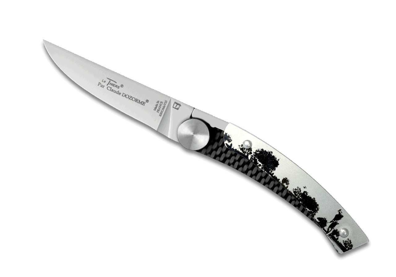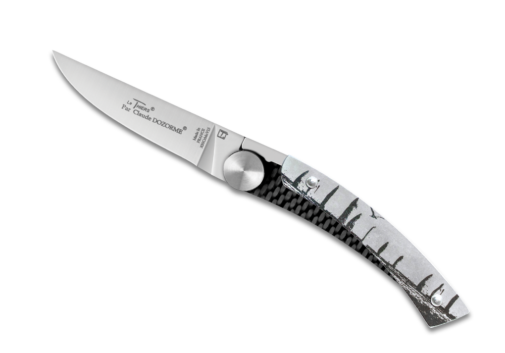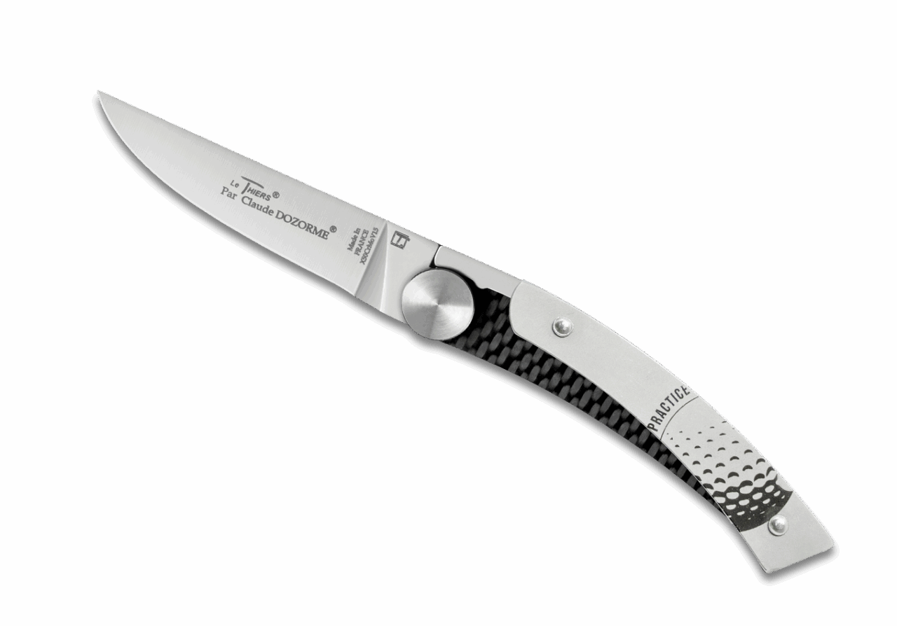 Le Thiers® JERO est un couteau pliant à cran plat, composé d'un manche carbone et d'une lame en acier inoxydable montée sur un axe. Ce couteau de poche moderne et léger vous accompagne dans votre vie quotidienne. Son manche est gravé au laser avec des motifs rappelant le sport, la nature ou la ville. Disponible dans un coffret carton bleu,blanc ou rouge, idéal pour offrir ou s'offrir. La lame épaisse - 3 mm - en acier très haut de gamme X50CrMoV15 (0,50% de carbone, 15% de chrome, 1% de molybdène et 1% de vanadium) dispose d'un excellent tranchant, d'une grande tenue dans le temps et elle est facilement réaffûtable. Le système de verrouillage est très sécurisant. Fabrication 100 % française dans nos ateliers à Thiers.