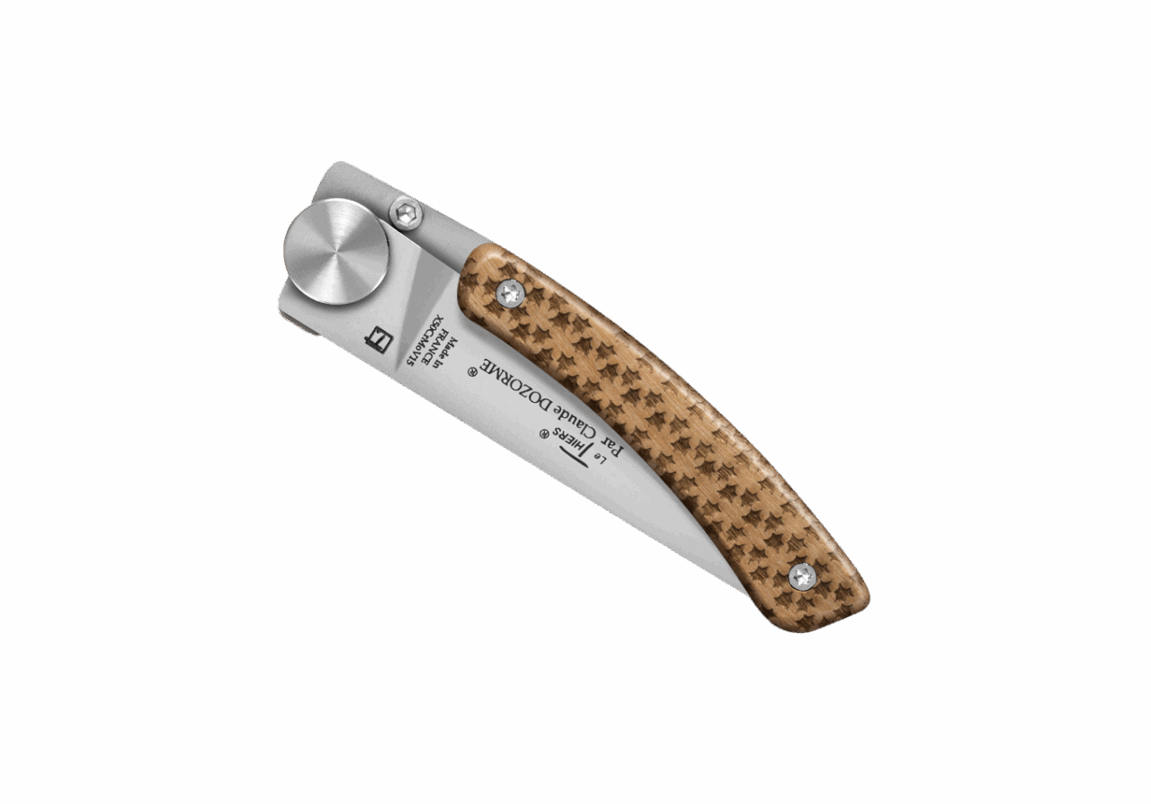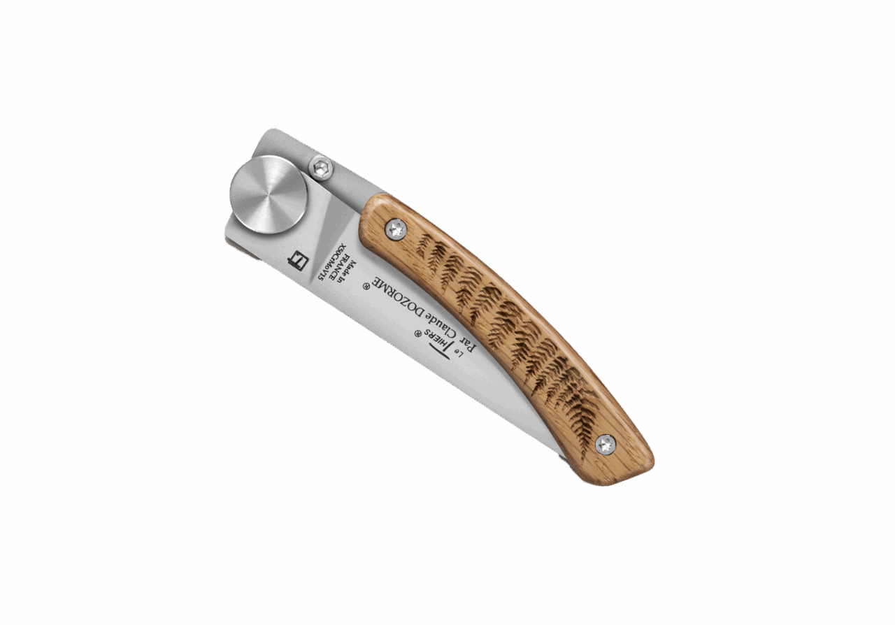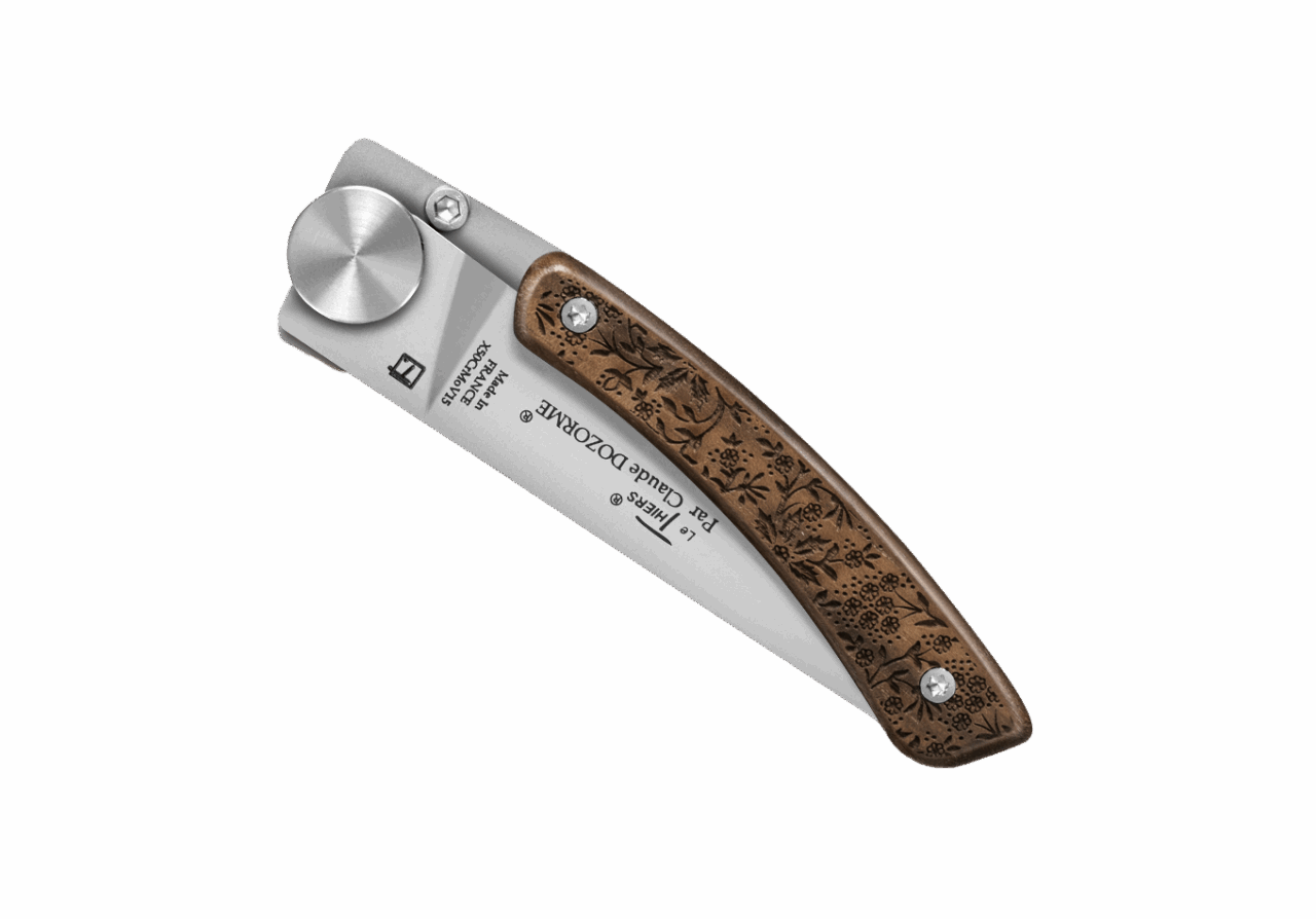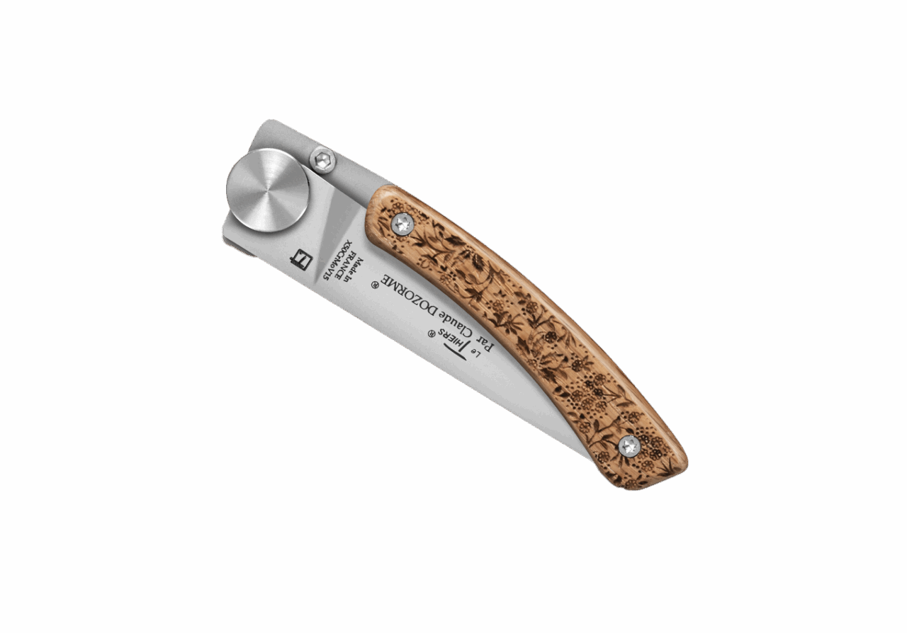 La nature a également inspiré le Liner de la Maison Claude DOZORME. Ce modèle Le Thiers® habillé d'un manche en noyer ou chêne gravé de motifs vous rappellera la nature sous toutes ses facettes. Ultra plat, léger, chaud au regard comme au toucher, ce couteau sera votre compagnon du quotidien, en ville comme à la campagne. Tous les motifs sont disponibles sur manches chêne ou noyer.
