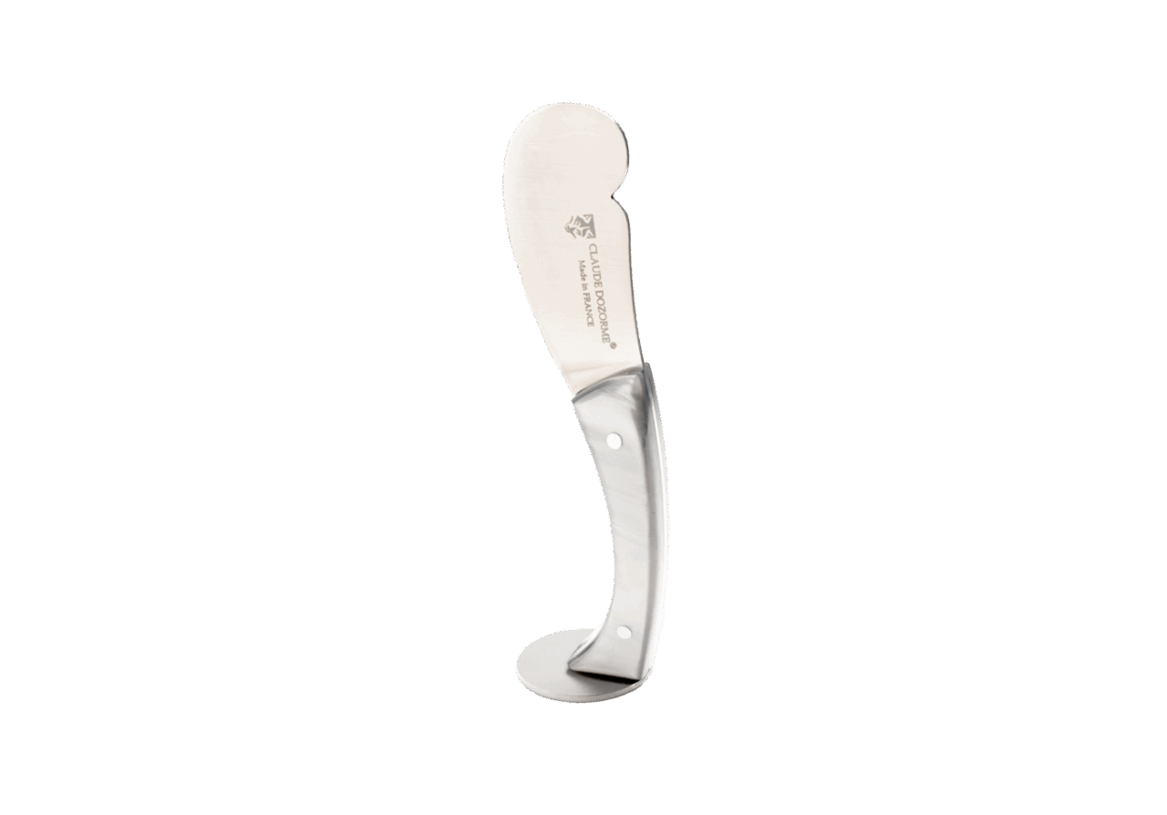 Ce couteau à beurre possède un socle intégré au manche qui lui permet de tenir à la verticale. Sa lame légèrement coupante permet de couper du beurre même froid. Avec sa lame à bout rond, vous pouvez étaler facilement.