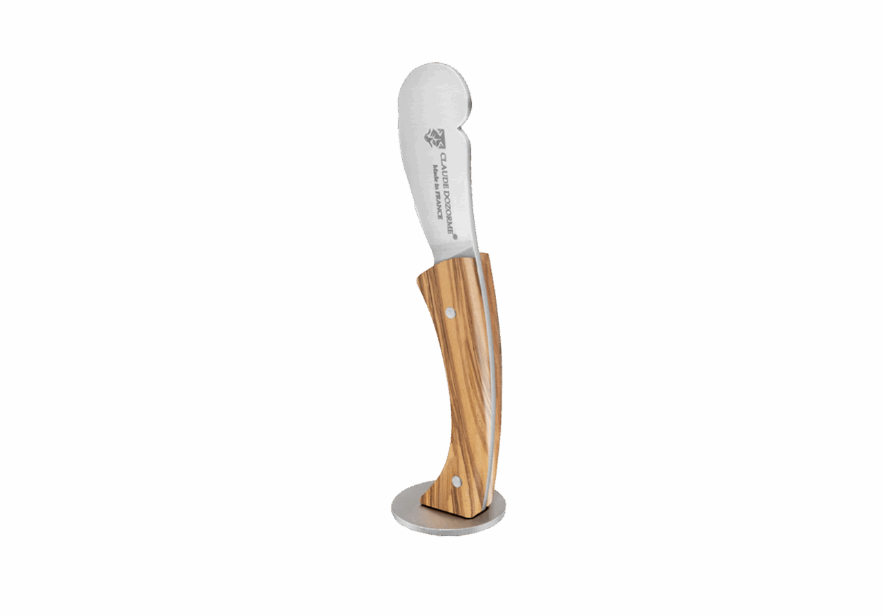 Disponible en manche bois olivier, bouleau nain ou en gris clair.