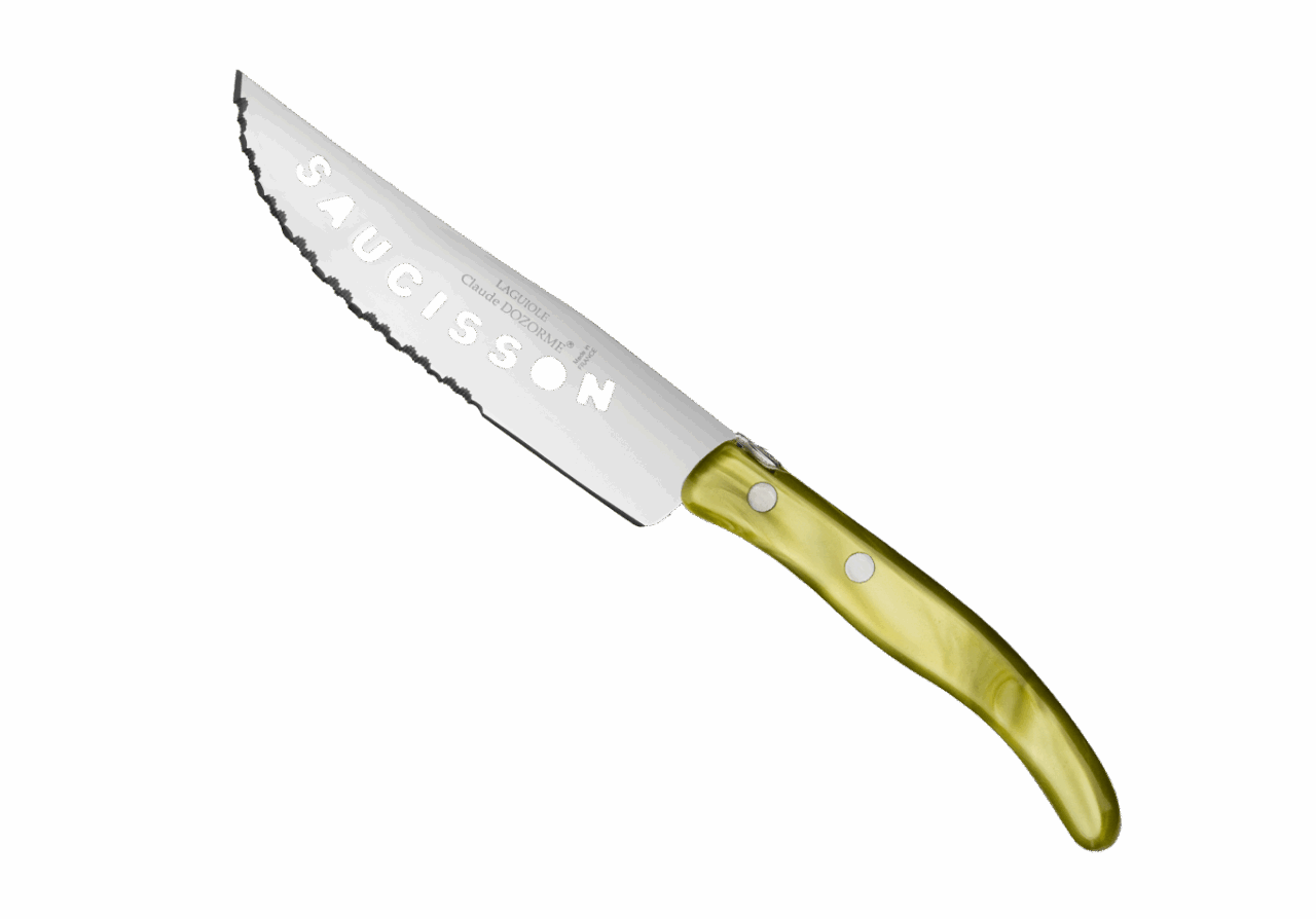 Le couteau à saucisson Berlingot est conçu pour un usage quotidien et passe au lave-vaisselle. La microdenture facilite la découpe du saucisson, ce qui vous permet de couper de belles tranches régulières et nettes. La microdenture de la lame du couteau à saucisson est faite manuellement. Le plus ? Des trous sur la lame forment le mot saucisson ou Auvergne, au choix ! Estéthique mais aussi utile, ce creux évite que le saucisson colle. Notre gamme Berlingot apporte de la couleur dans votre cuisine et sur vos tables.